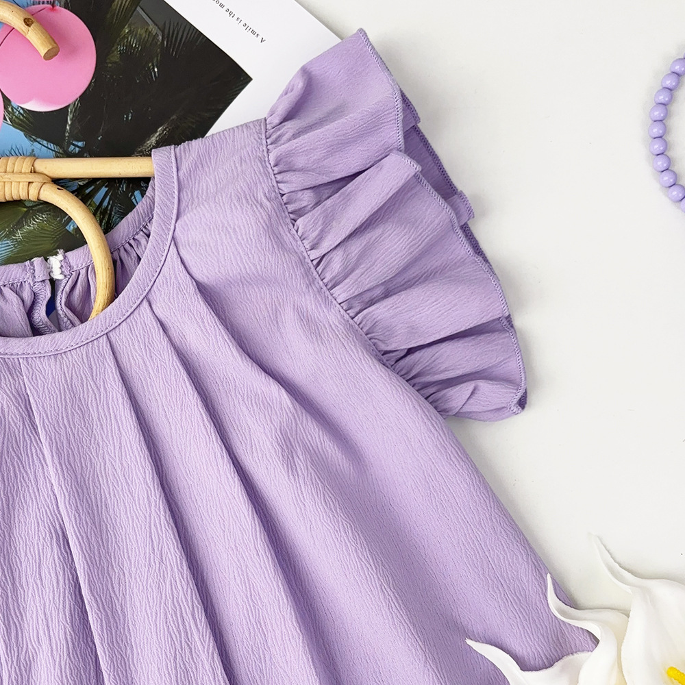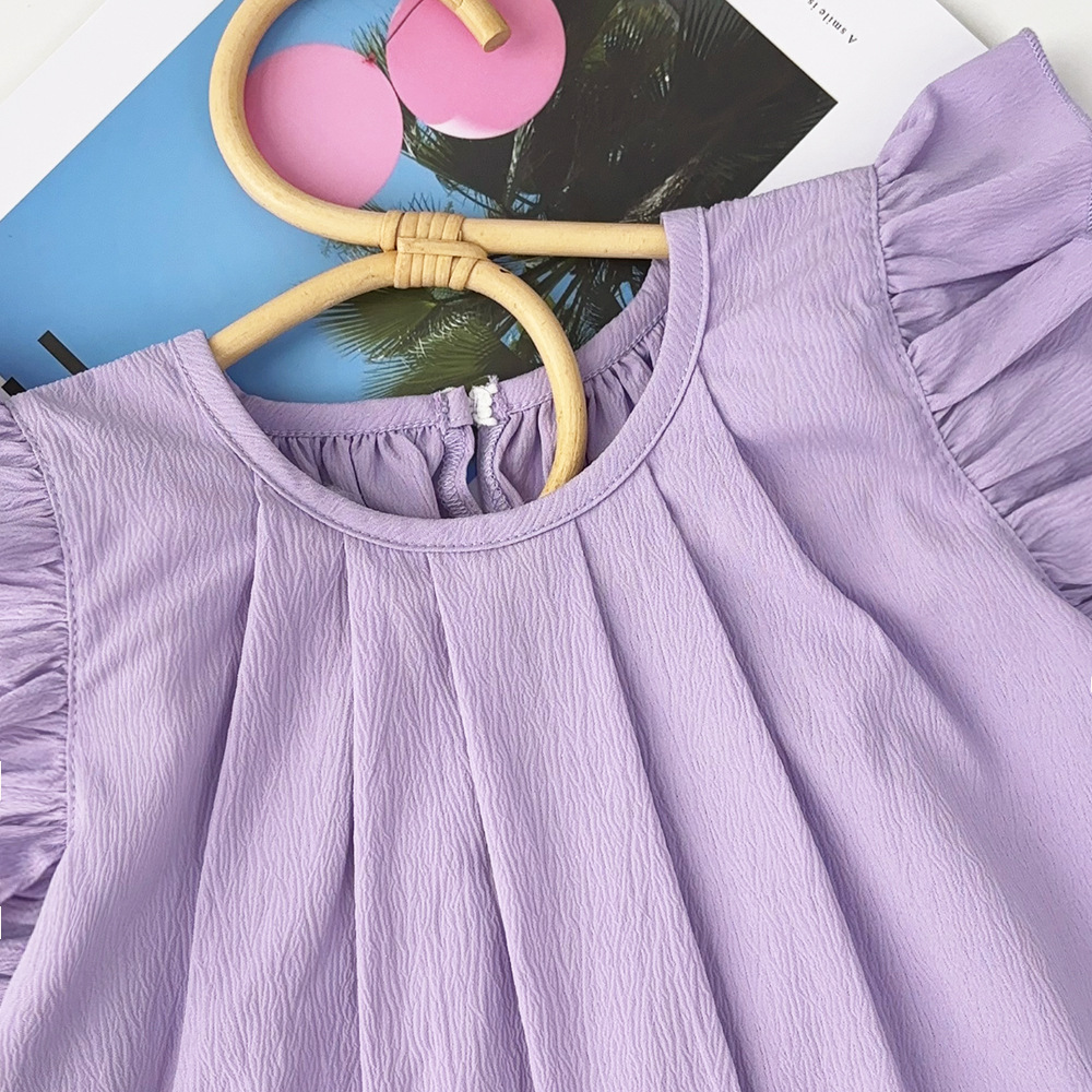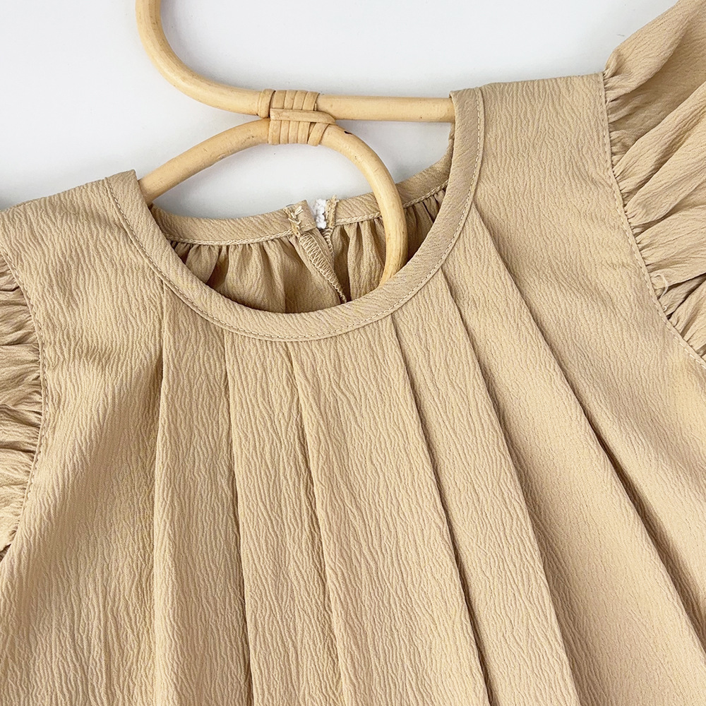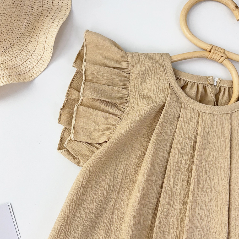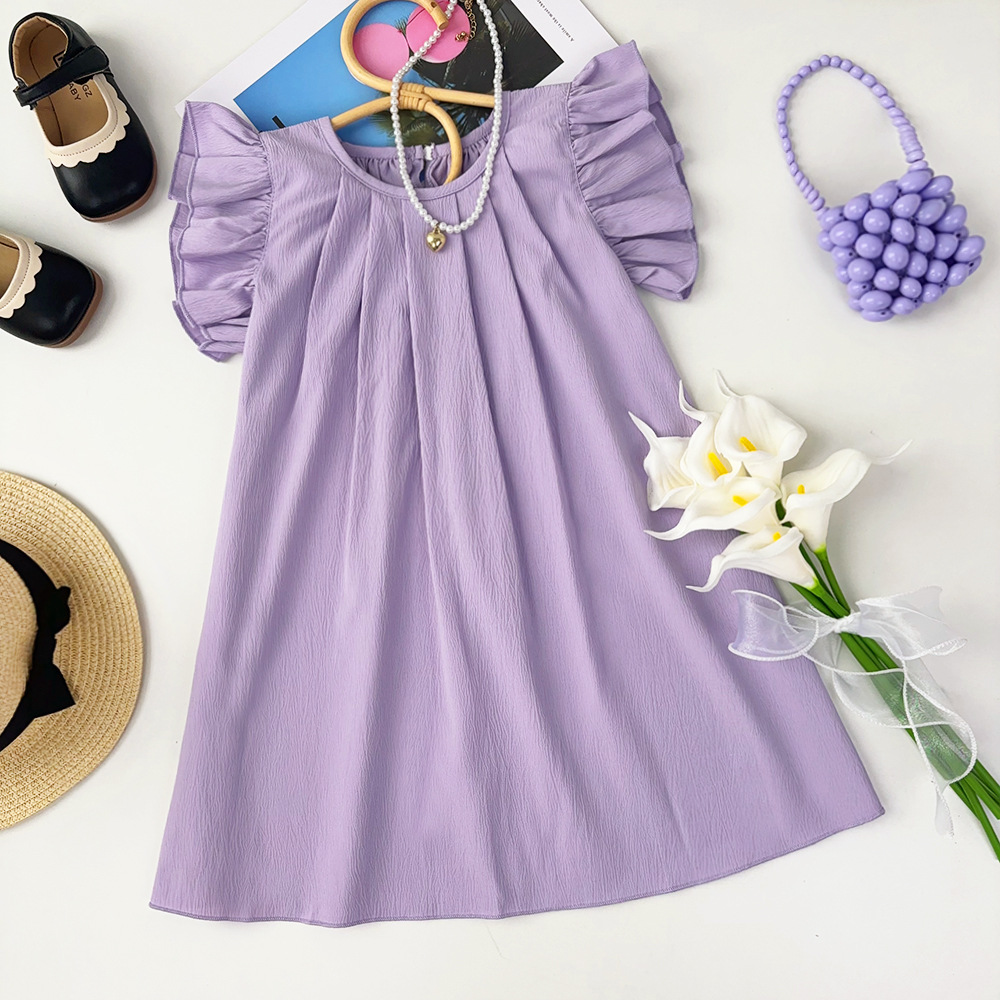 여아용 레드 원피스 2026 여름 신상품 여아용 단색 러플 스커트 유럽 및 미국 스타일 해외에서 인기 판매