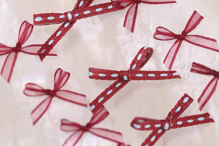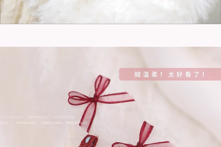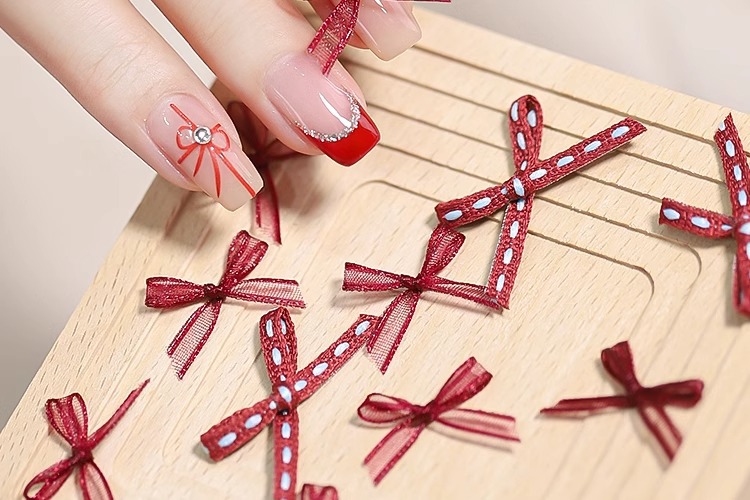 2024 봄 그물 빨간 폴로 활 Organza 레이스 네일 장식품 네일 장식품 작은 액세서리