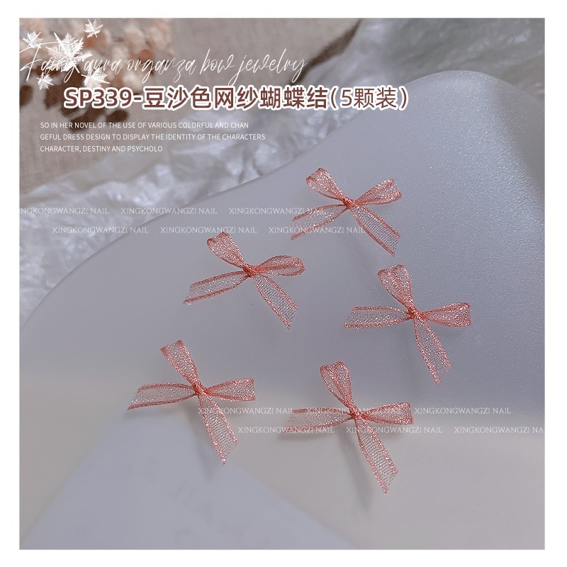 2024 봄 그물 빨간 폴로 활 Organza 레이스 네일 장식품 네일 장식품 작은 액세서리스토어 가기