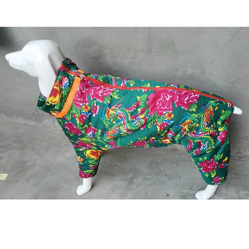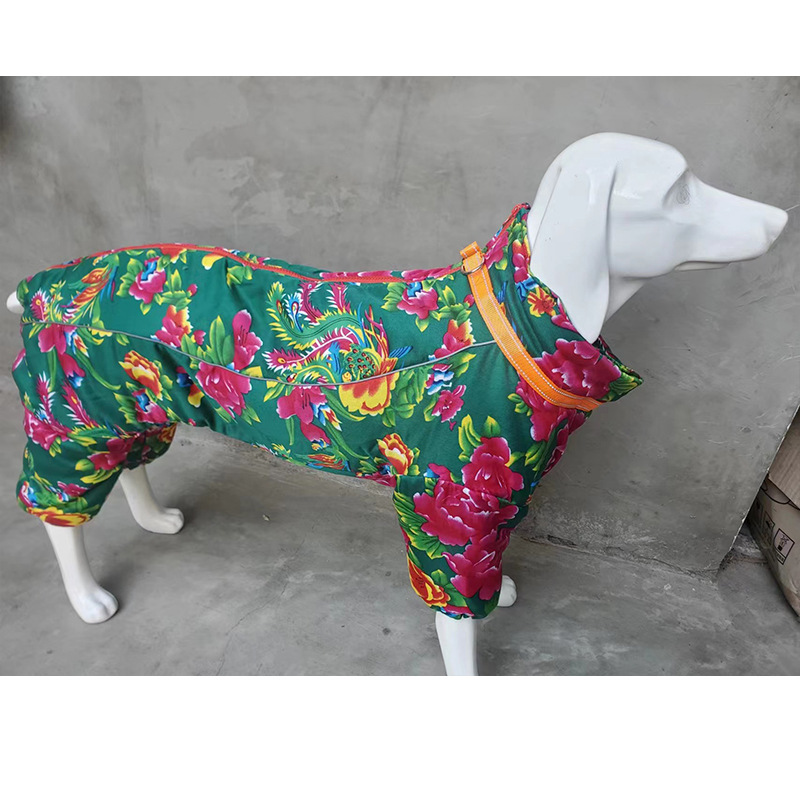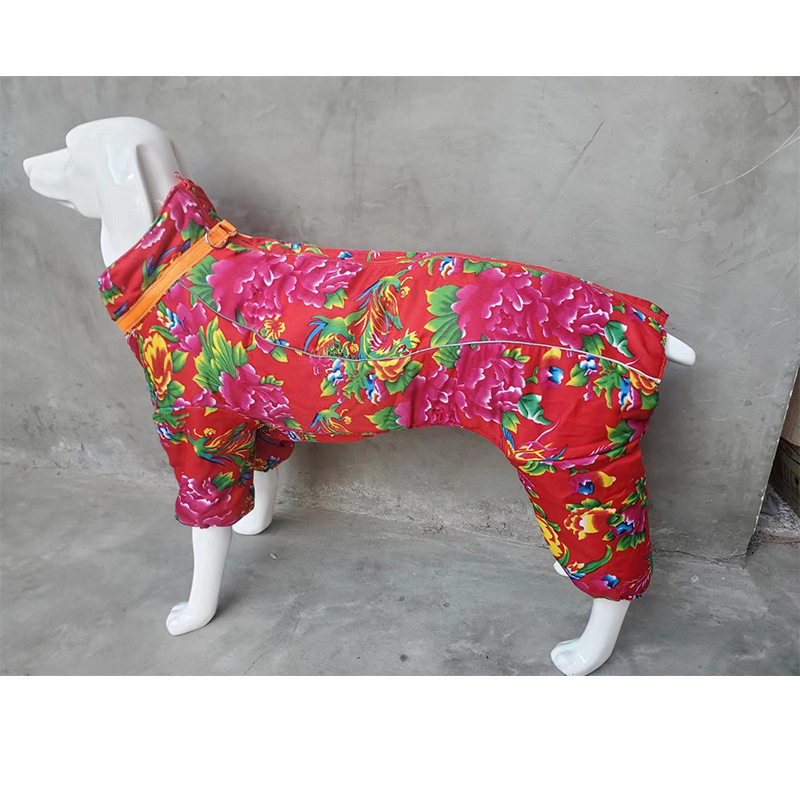 강아지 면옷 애완동물 옷 따뜻한 대형 중형 소형견 골든 리트리버 동북 대형 꽃무늬 옷 네발 전면 커버 면옷 두꺼운