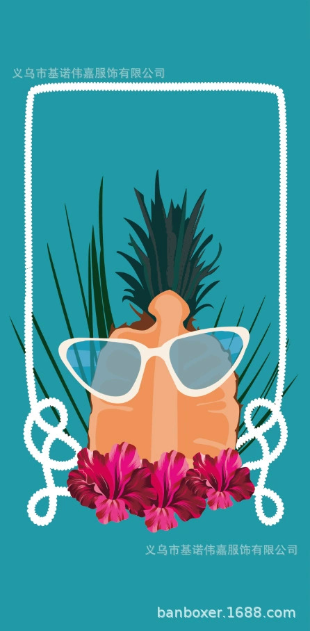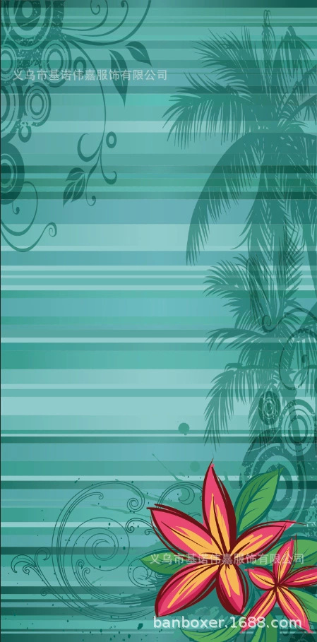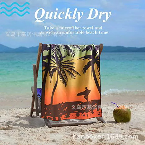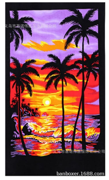 국경 간 뜨거운 판매 인기있는 클래식 하와이 시리즈 인쇄 양면 벨벳 비치 타월 마이크로 파이버 흡수성 빠른 건조