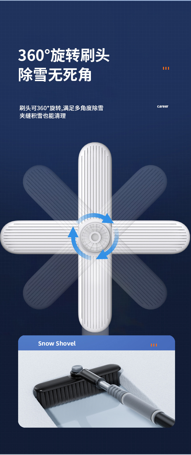 ●除了可以去除汽车上的雪和霜之外,还可以扫刷电动车,自行车以及被大雪被大雪覆盖的房子,玻璃门窗等。