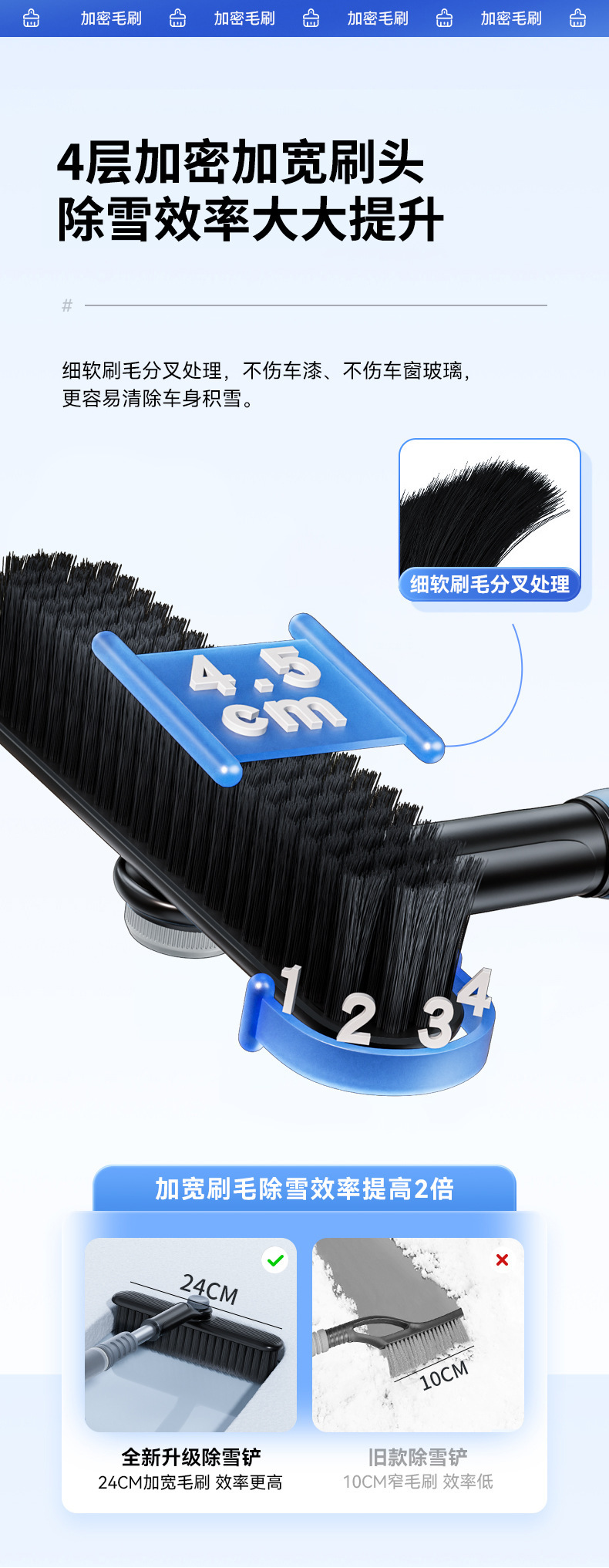 ●除雪刷头:ABS高强度塑料,PVC刷丝耐低温不易折断