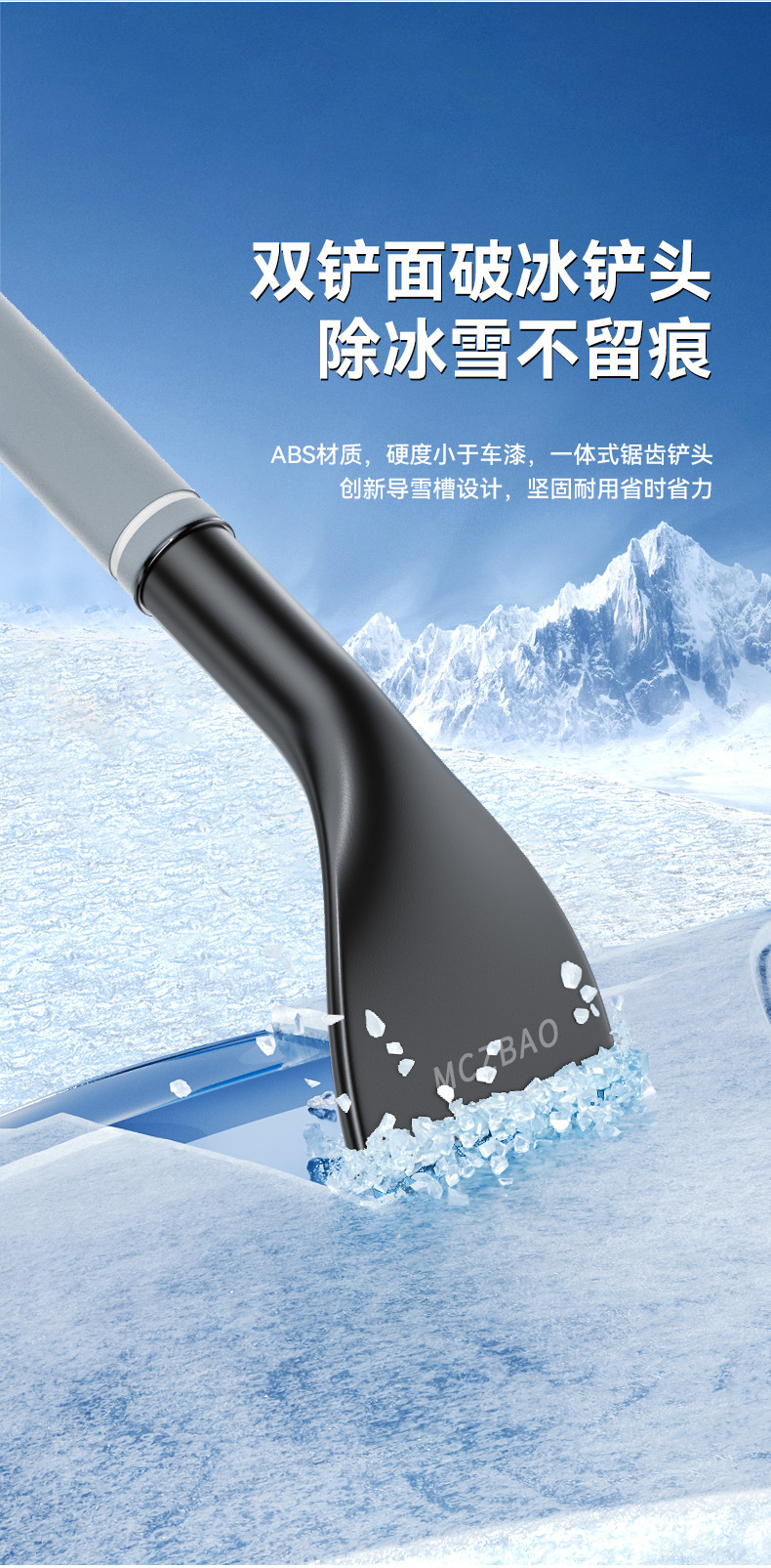●除雪铲头:采用ABS高强度塑料铸造成形,坚硬牢固