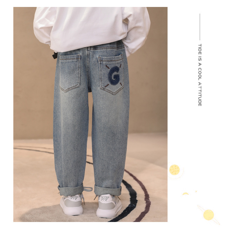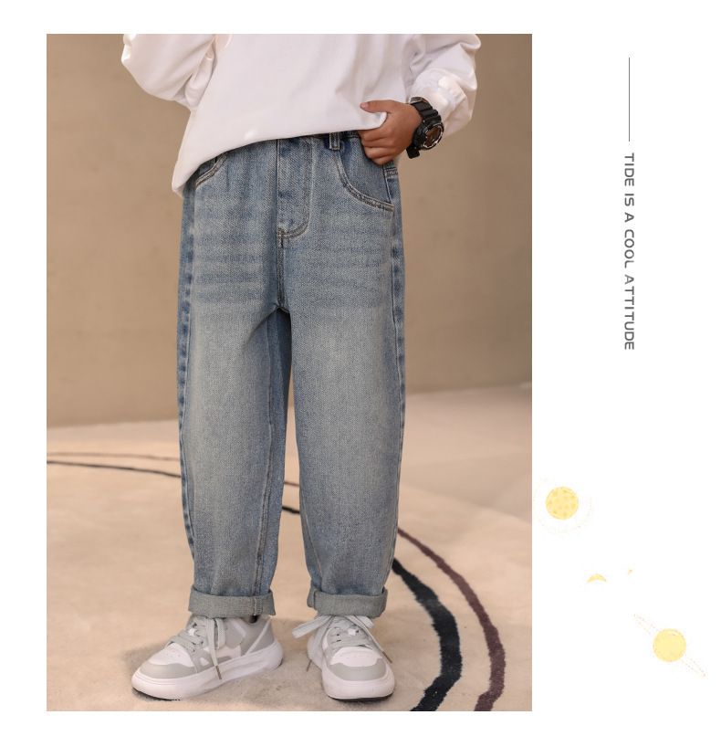 소년 청바지 2024 봄과 가을 새로운 중형 및 대형 어린이 바지 느슨한 스트레이트 봄 소년 바지 캐주얼스토어 가기