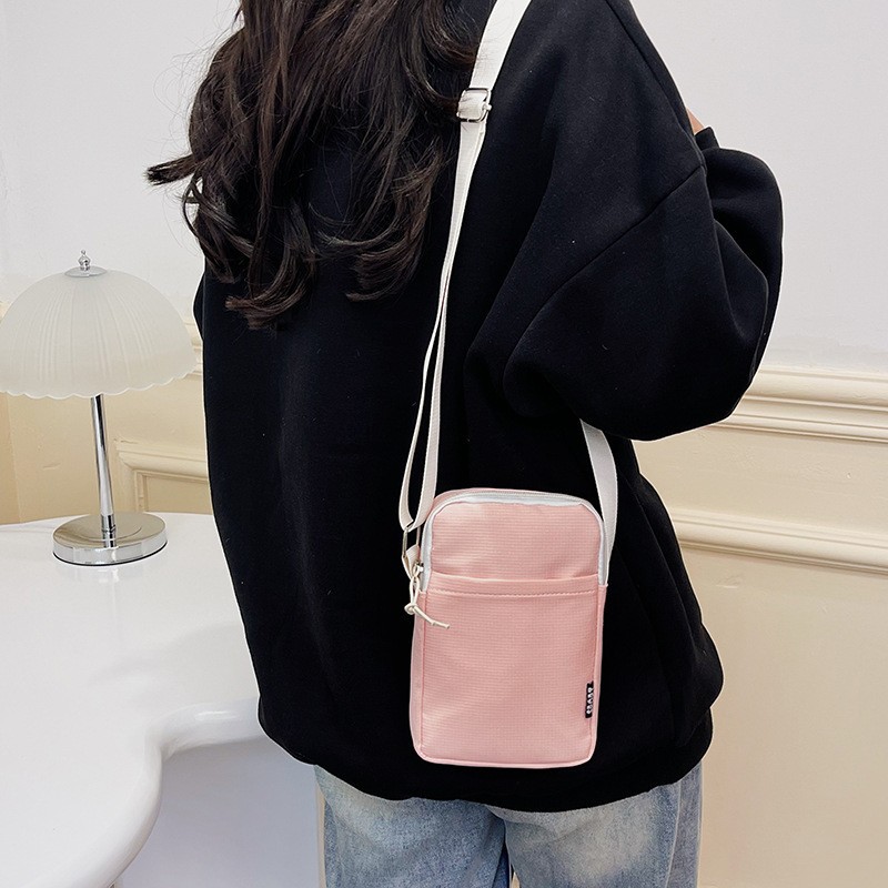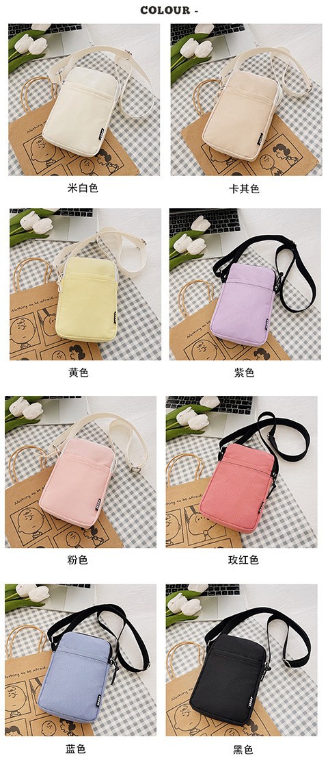 여성 어깨 가방 달콤한 크로스 바디 미니 학생 작은 가방 한국 동전 지갑 수직 손 캔버스 단색 전화 가방
