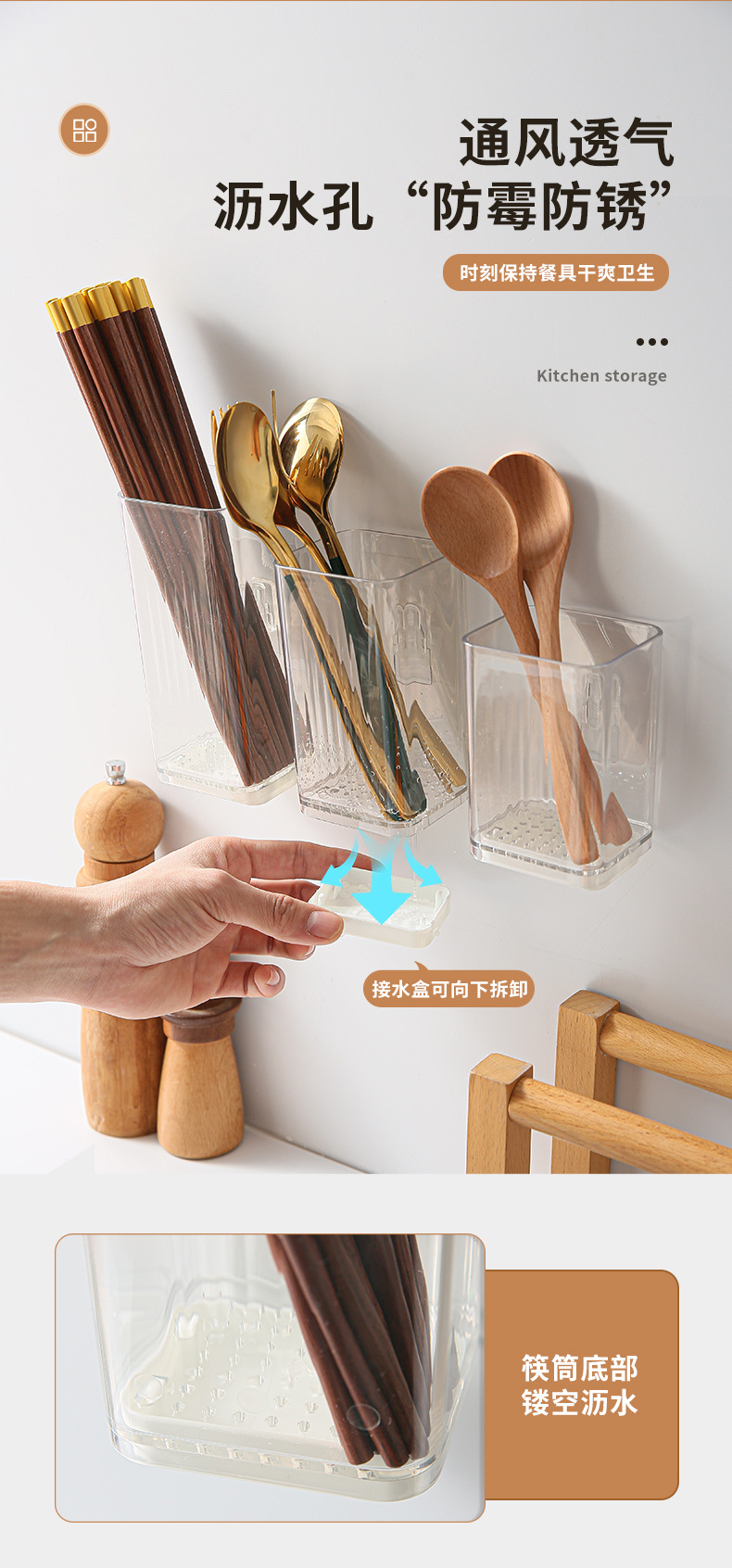 서랍 젓가락 저장 상자 가정용 젓가락 홀더 벽에 장착 된 젓가락 홀더 주방 숟가락 식기 보관 상자