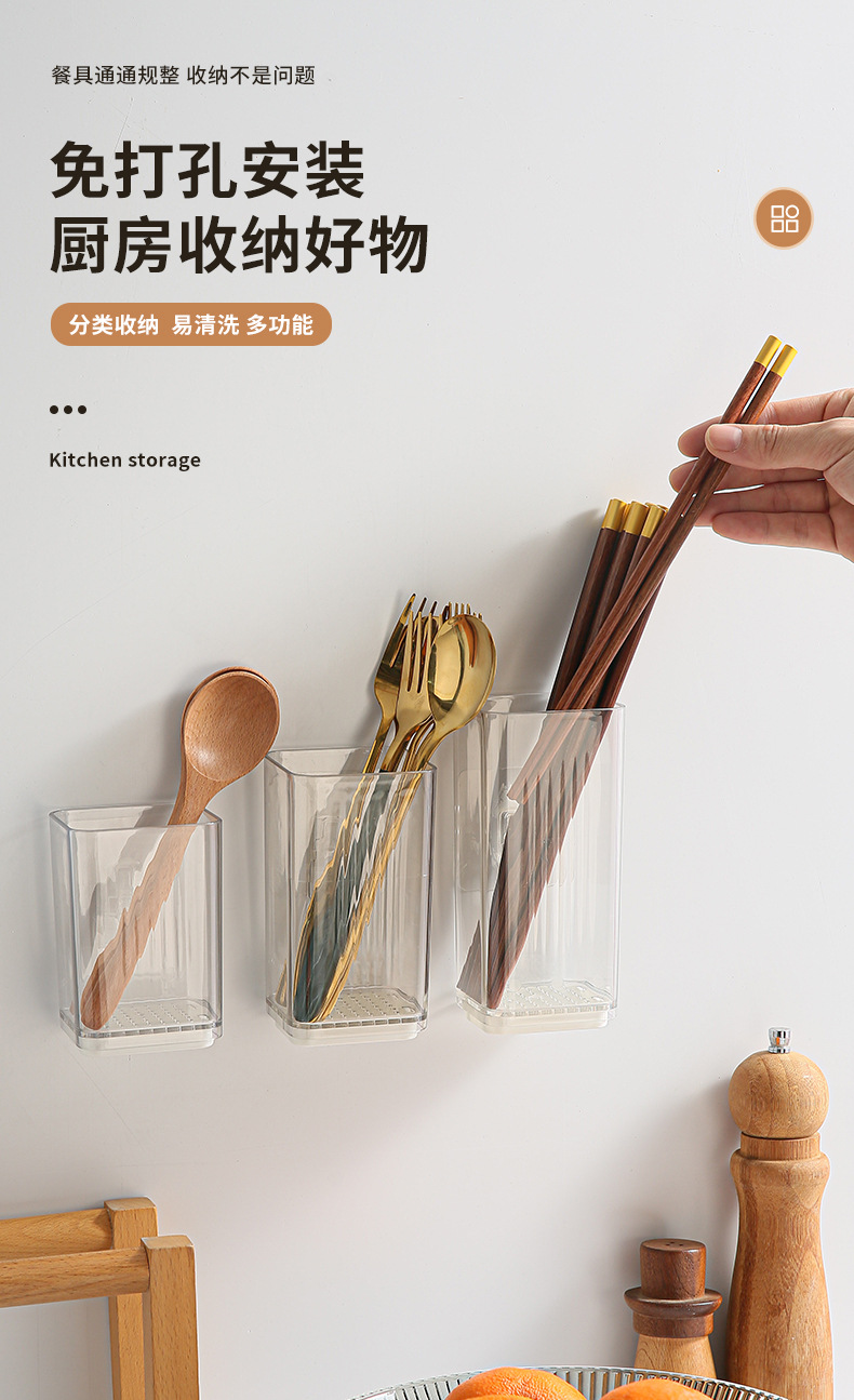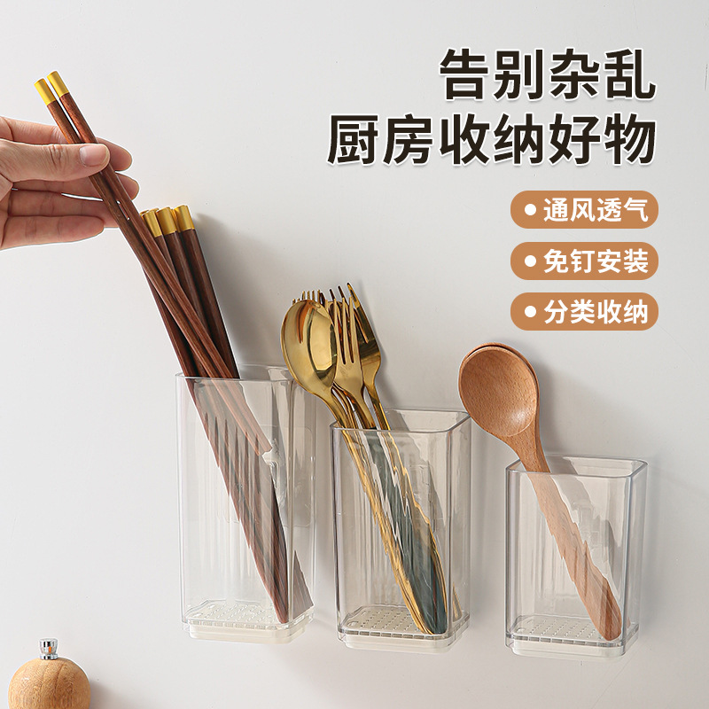 서랍 젓가락 저장 상자 가정용 젓가락 홀더 벽에 장착 된 젓가락 홀더 주방 숟가락 식기 보관 상자스토어 가기