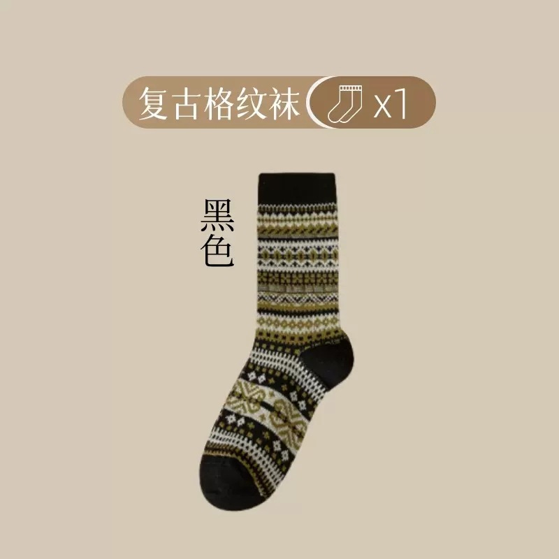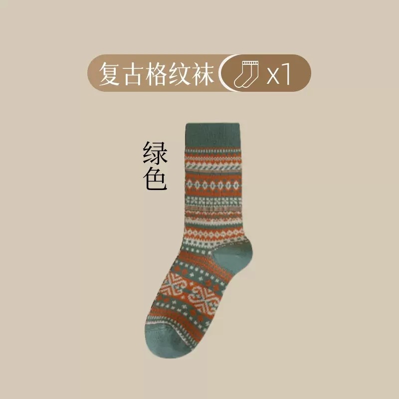 여성용 이중 바늘 양방향 양말 Maillard 착용 민족 스타일 스타킹 여성용 중반 송아지 양말 가을, 겨울 따뜻한 여성용면 양말 도매스토어 가기