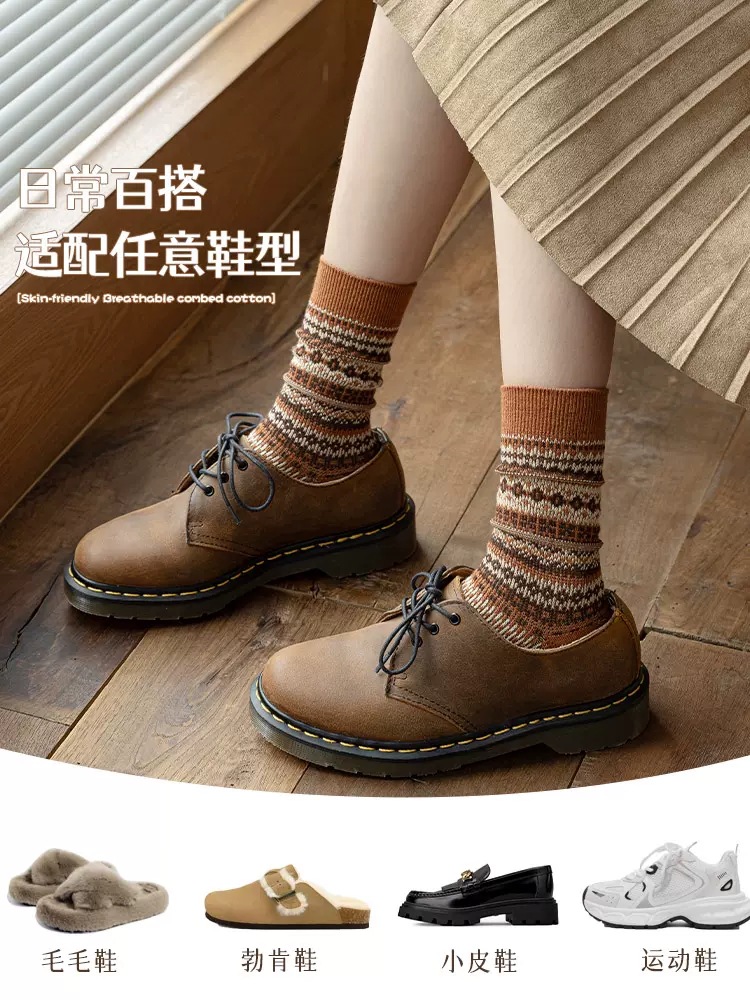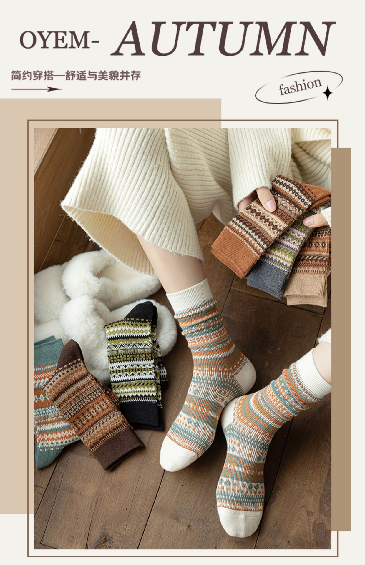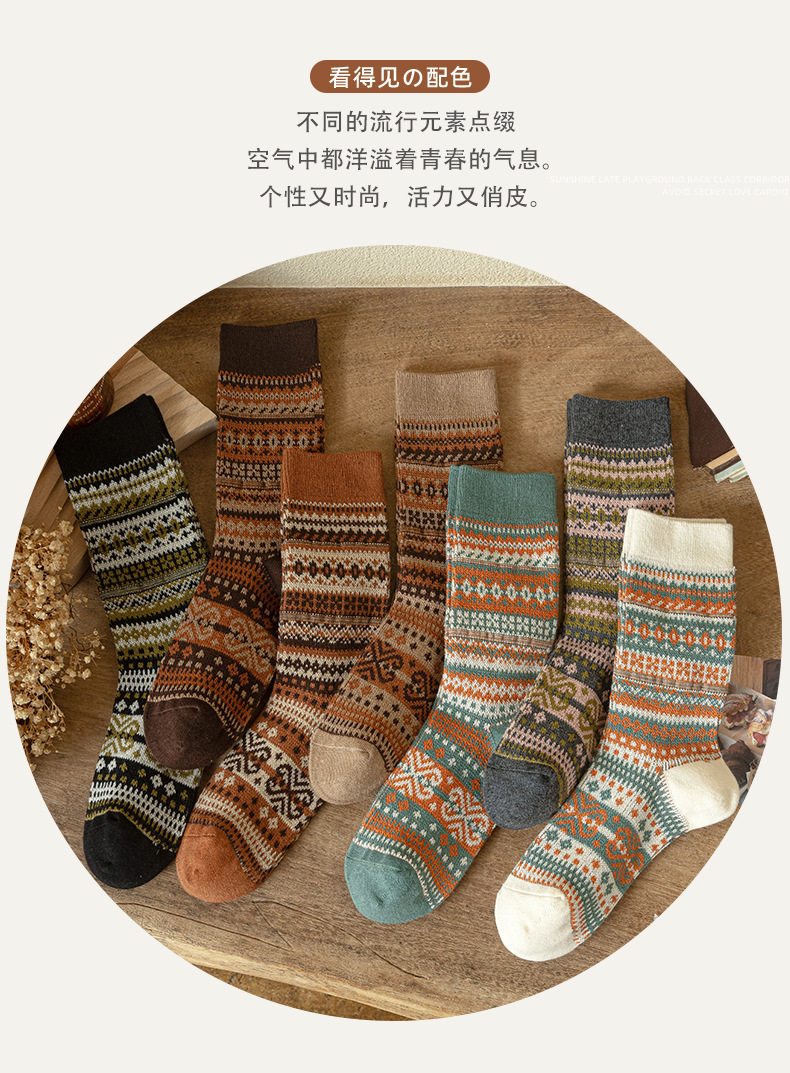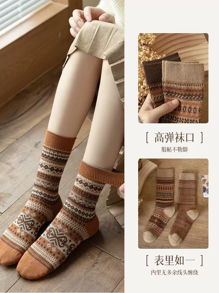 여성용 이중 바늘 양방향 양말 Maillard 착용 민족 스타일 스타킹 여성용 중반 송아지 양말 가을, 겨울 따뜻한 여성용면 양말 도매