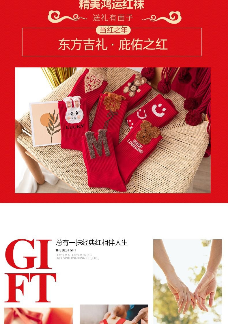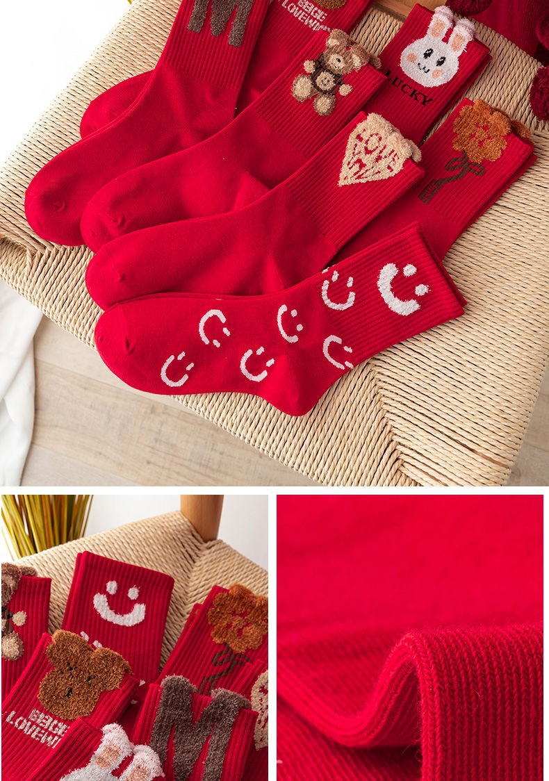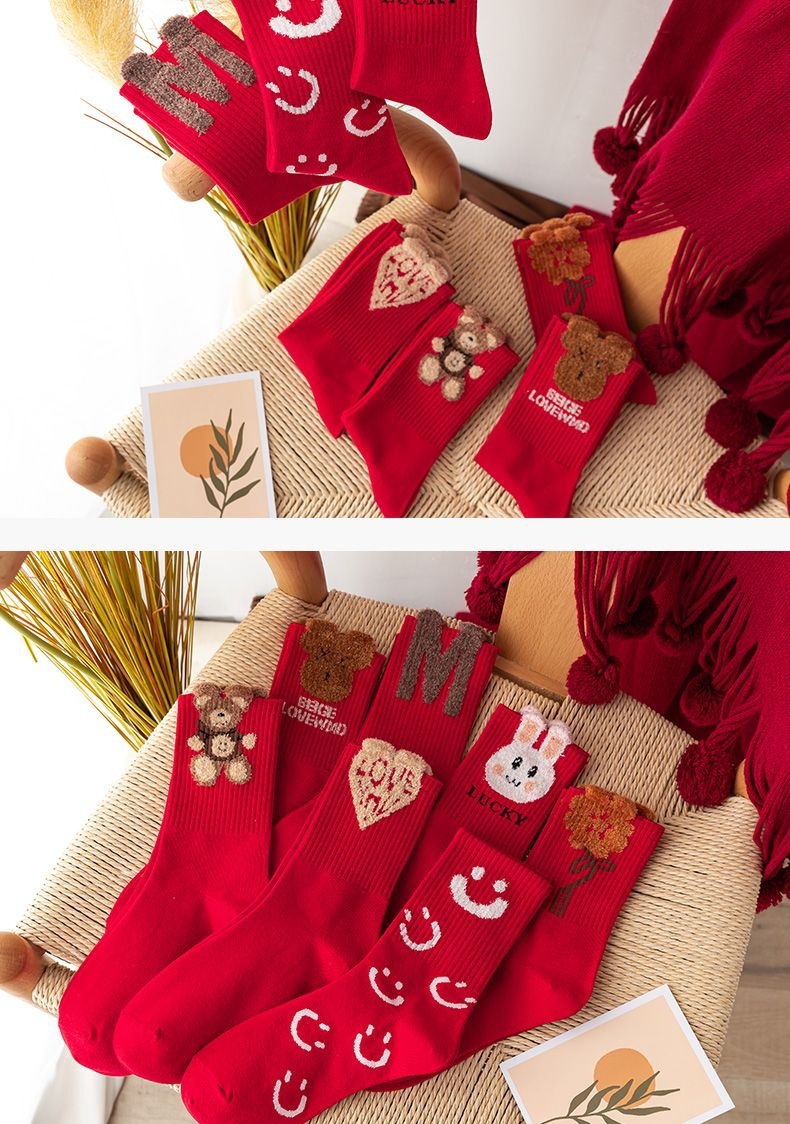 출생의 해 붉은 양말 가을과 겨울 봉제 토끼 년 중반 종아리 길이 양말 커플 사랑 스타킹 새해 올 매치 웨딩 양말