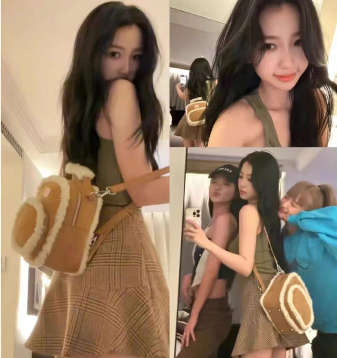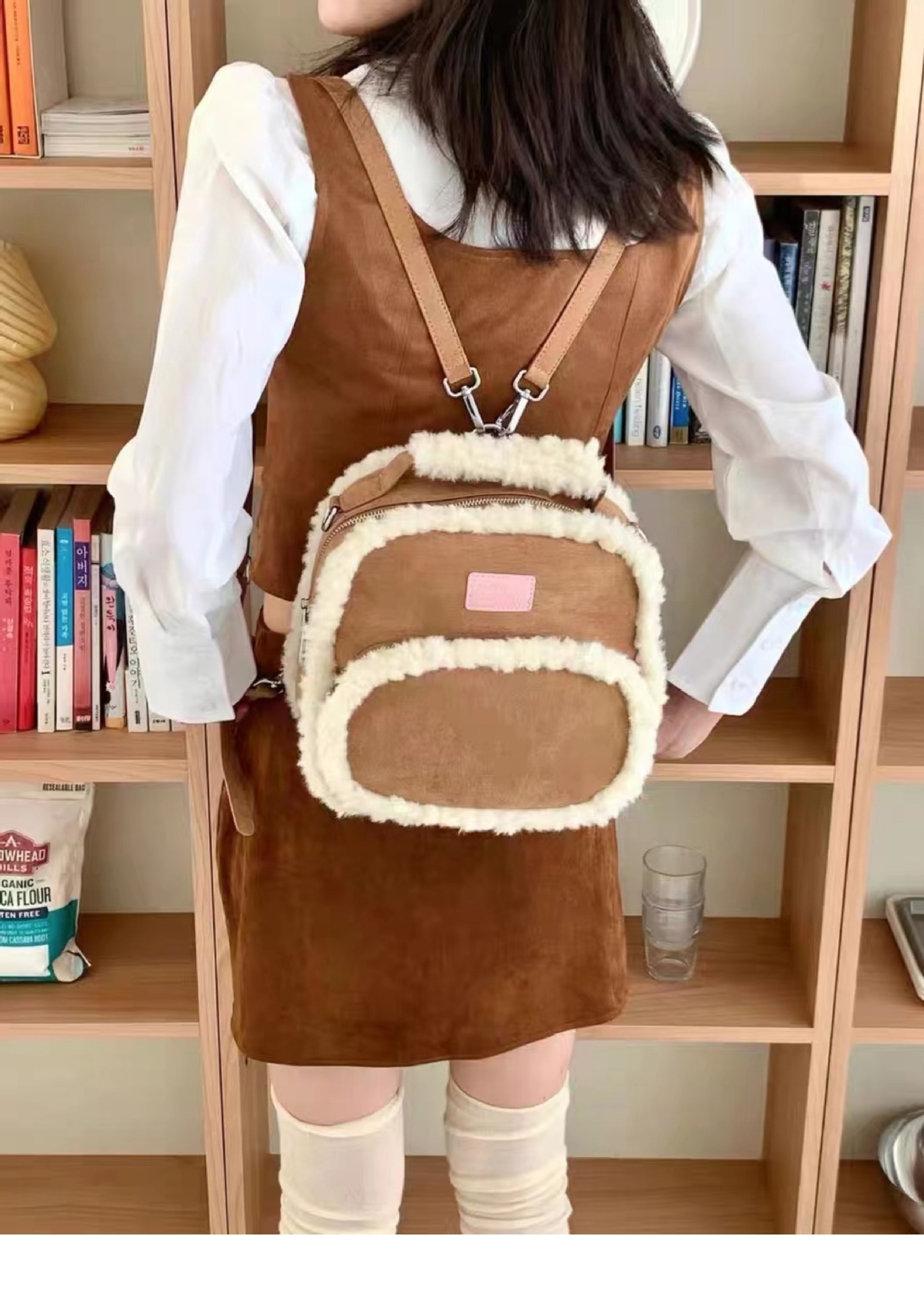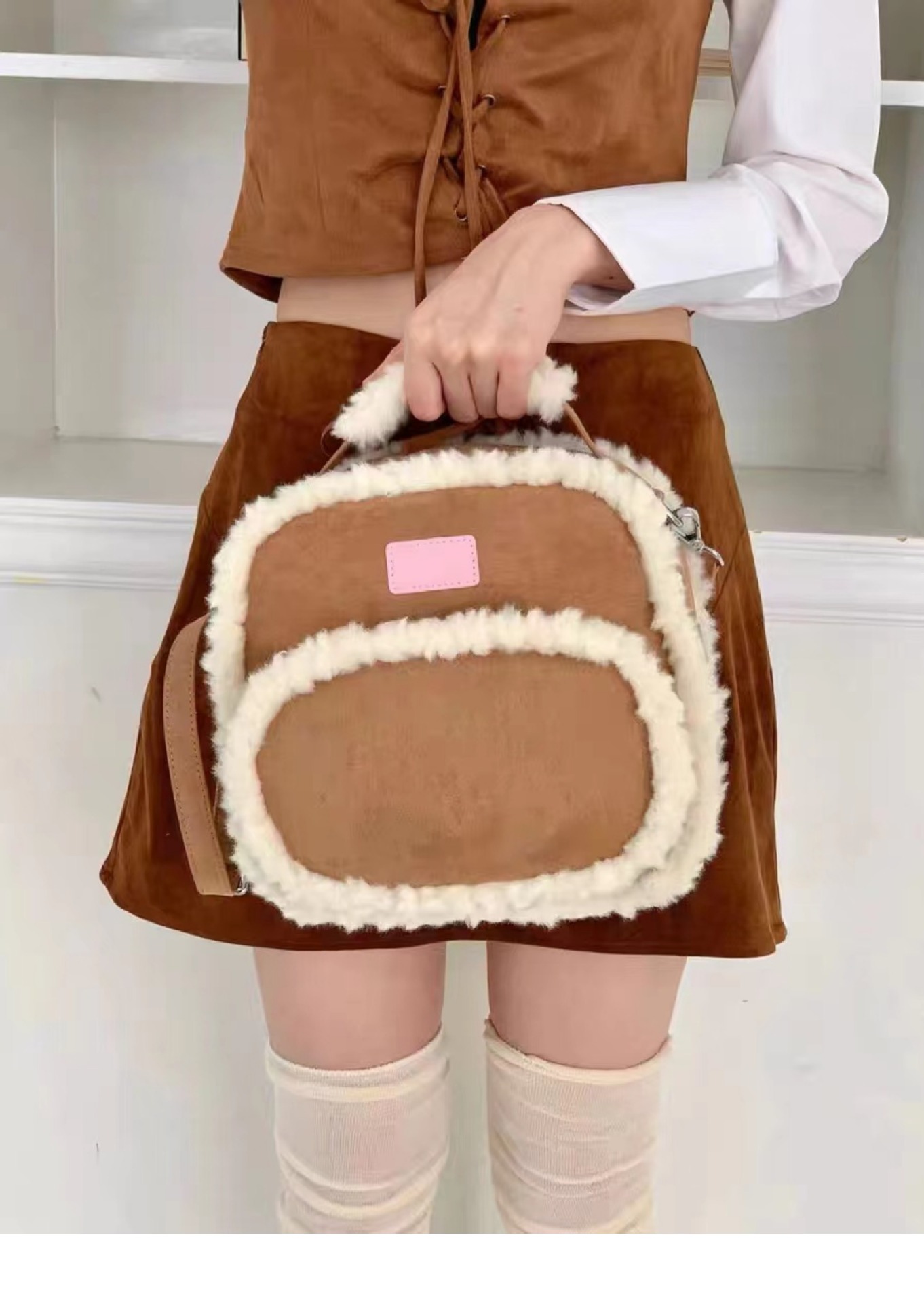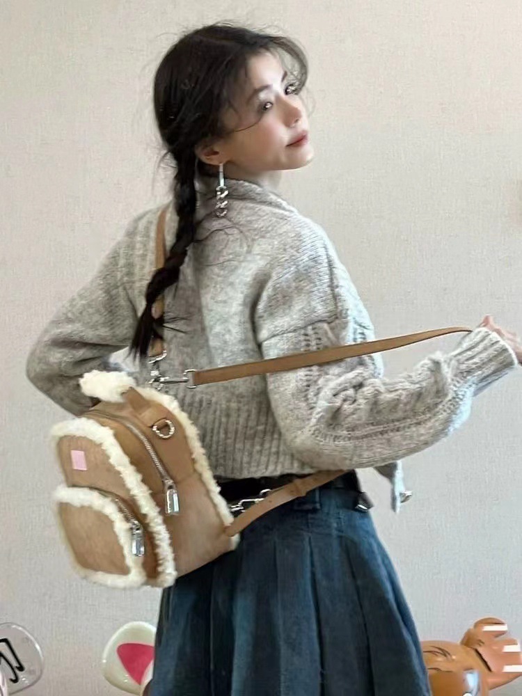 2025년 새로운 스타와 같은 스타일의 작은 사각형 가방 디자인 양털 가을 겨울 가방 틈새 스플라이싱 서양식 배낭스토어 가기