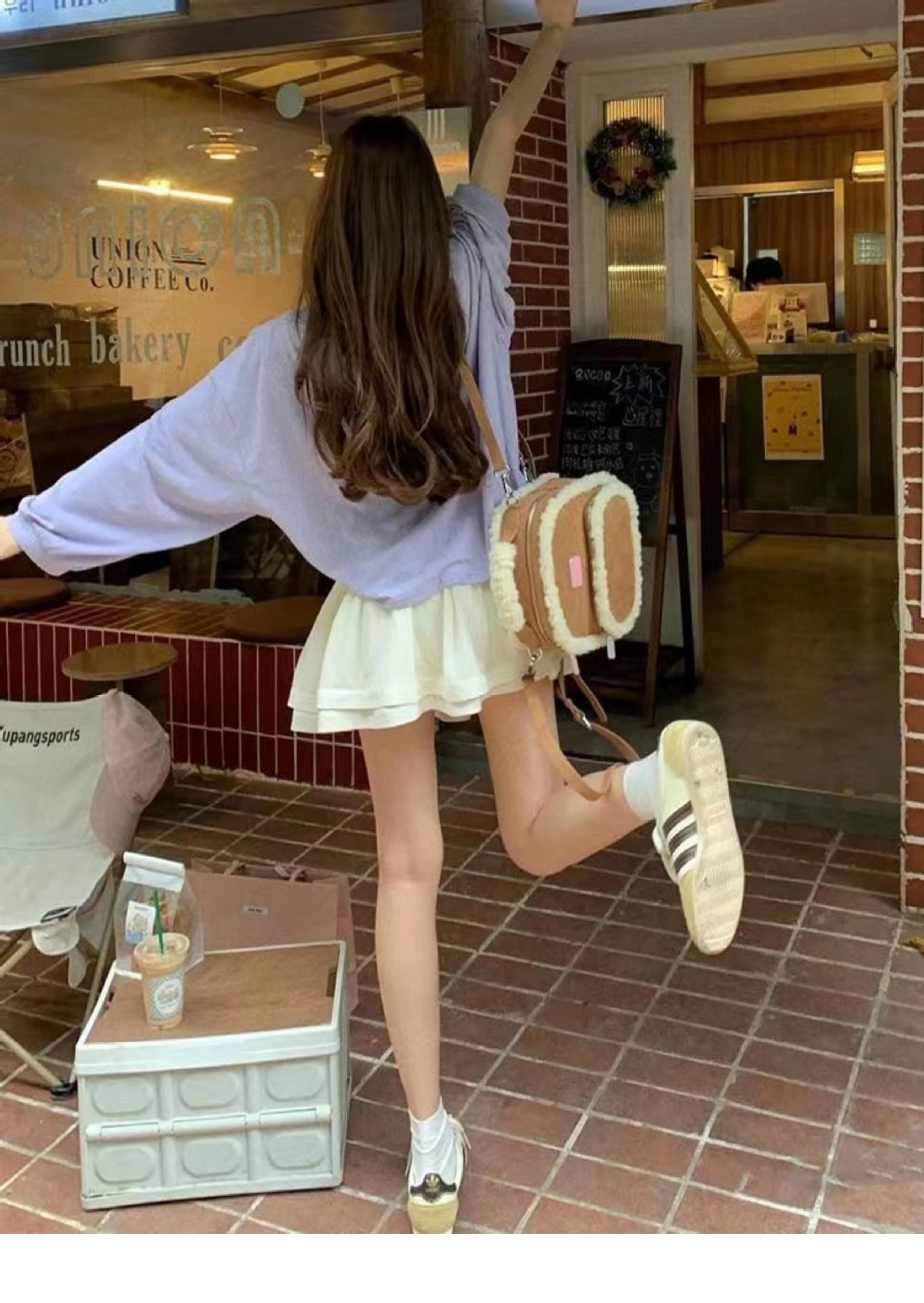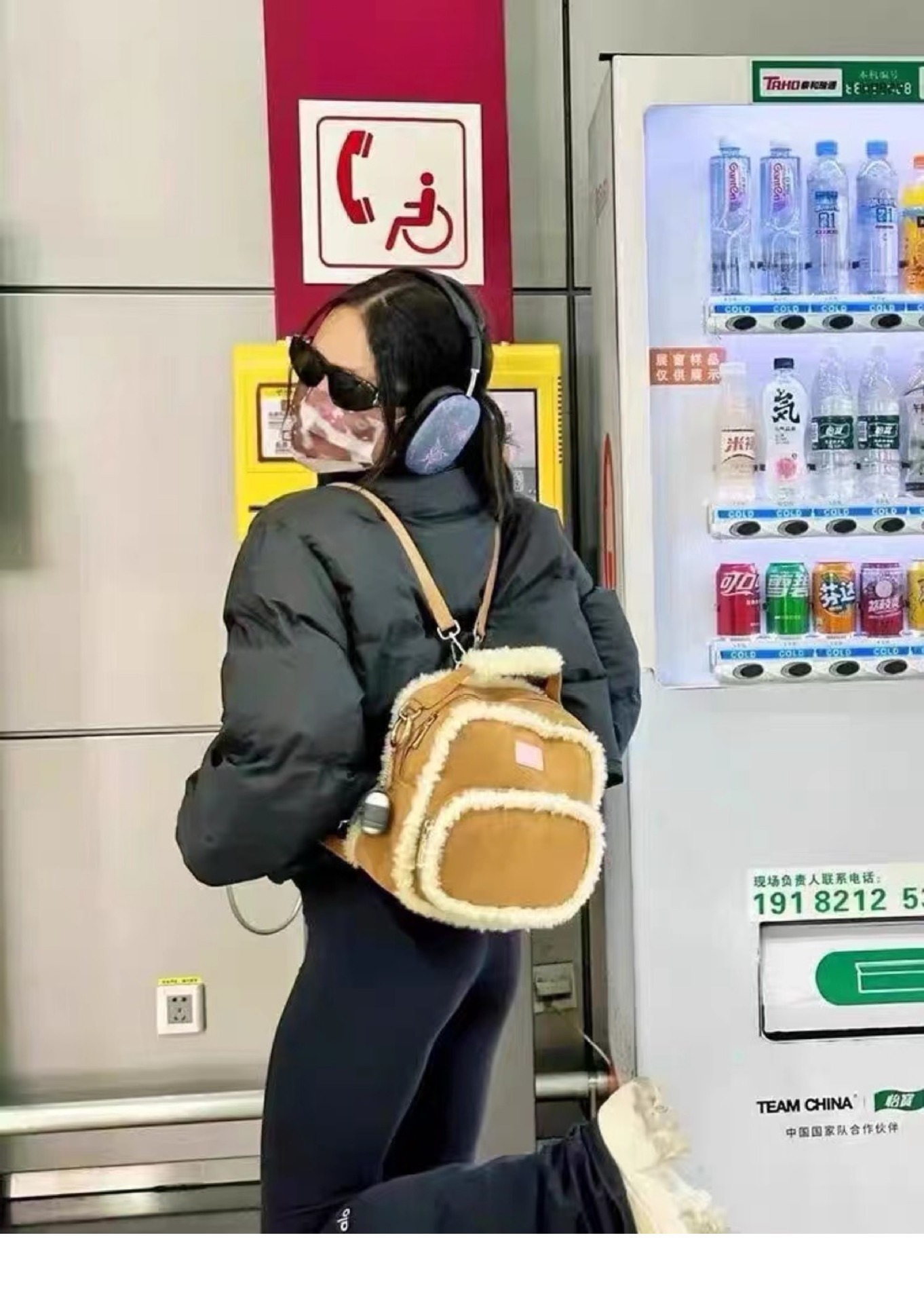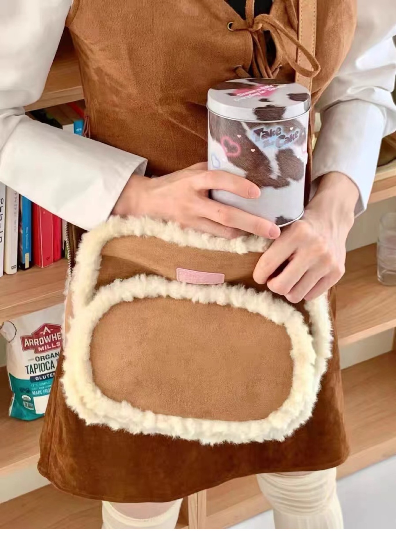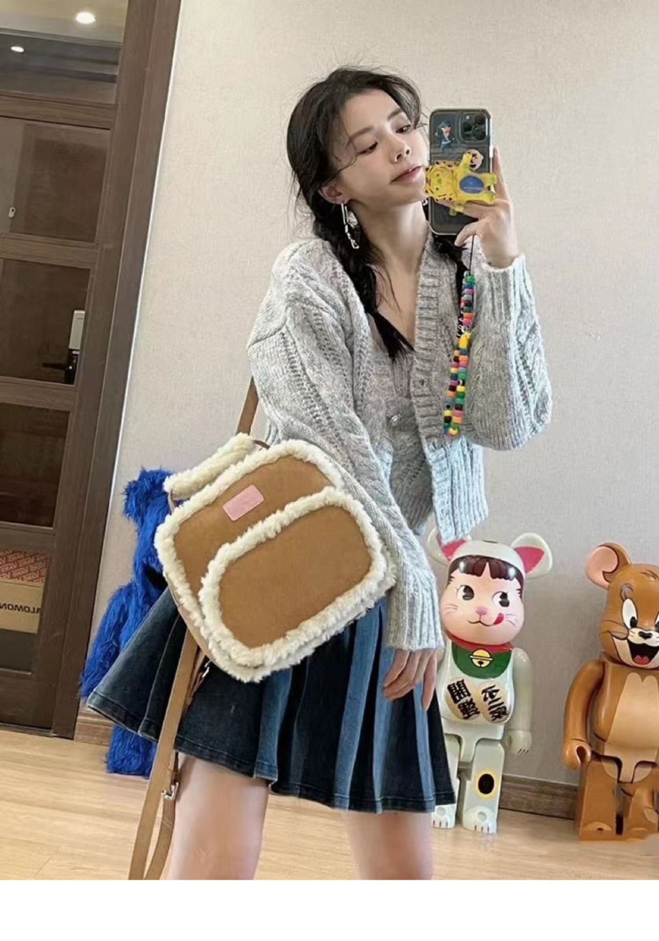 2025년 새로운 스타와 같은 스타일의 작은 사각형 가방 디자인 양털 가을 겨울 가방 틈새 스플라이싱 서양식 배낭스토어 가기
