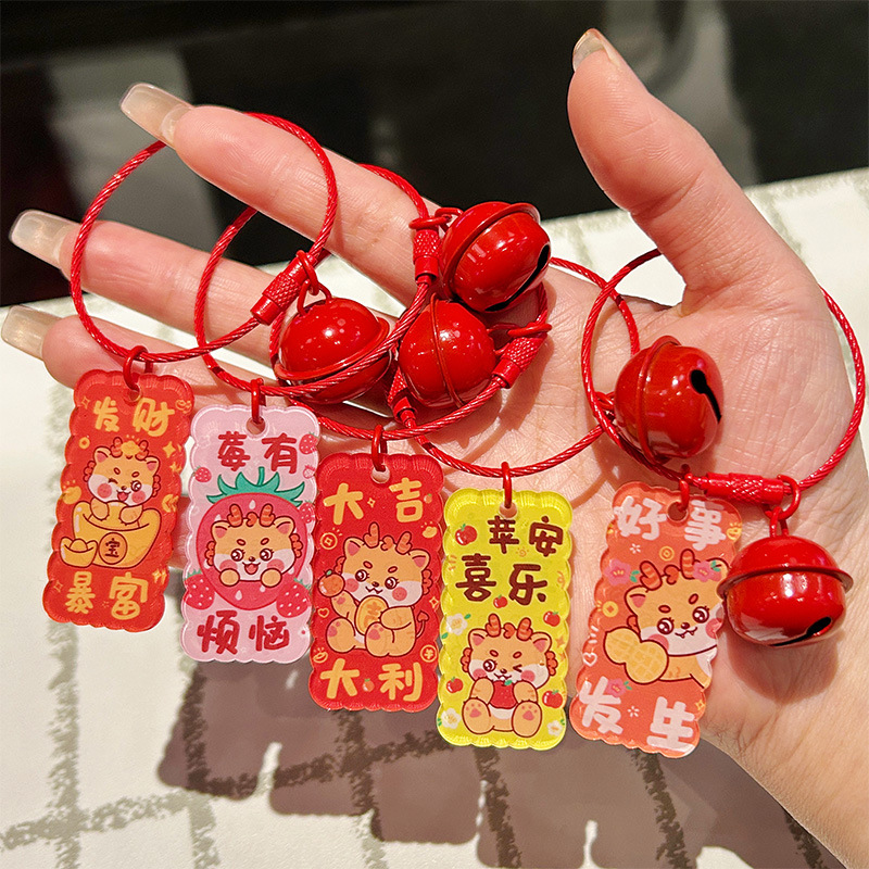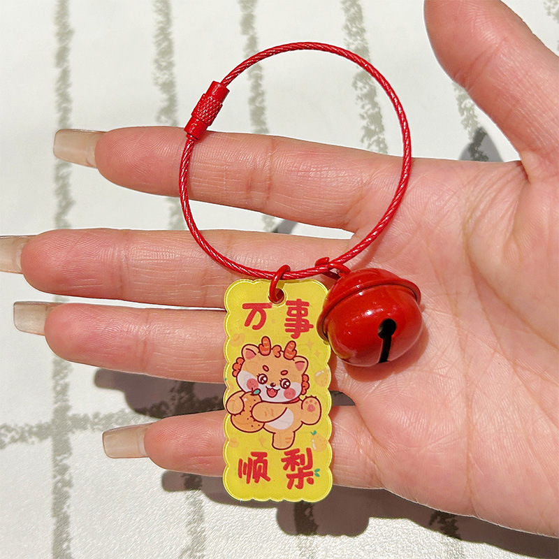 아크릴 드래곤 년 텍스트 교수형 카드 키 체인 원래 만화 조디악 드래곤 마스코트 스쿨백 펜던트 창조적 인 선물