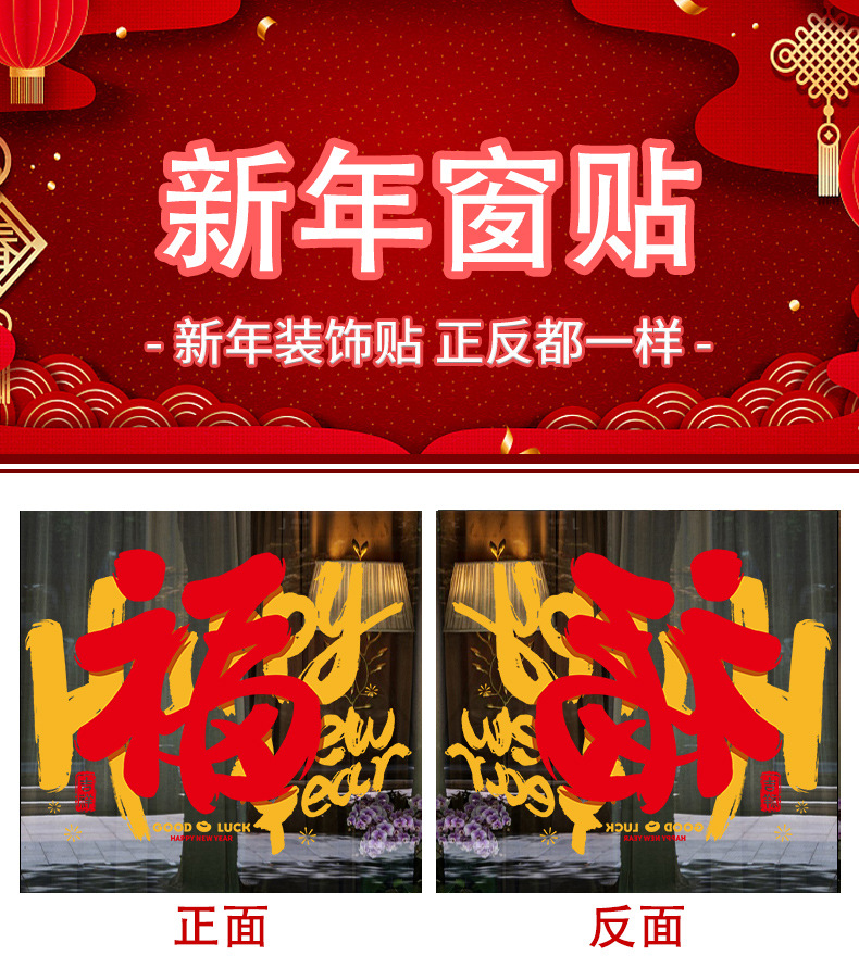 새해 정적 스티커 2024 용 년 상점 창 새로운 대형 푸 캐릭터 스티커 새해 문 및 창 장식 원활한 스티커