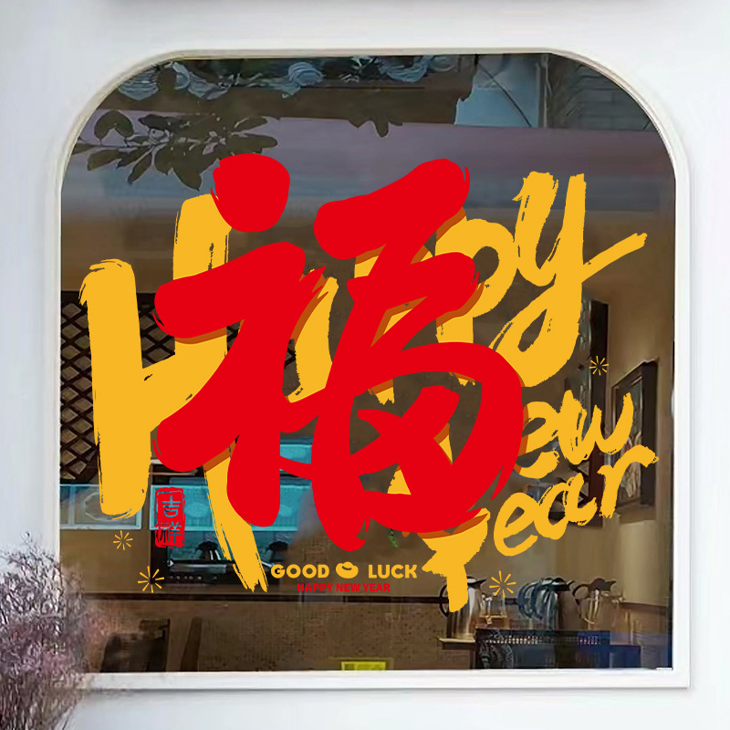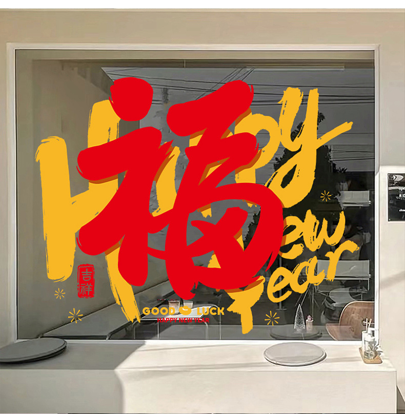 새해 정적 스티커 2024 용 년 상점 창 새로운 대형 푸 캐릭터 스티커 새해 문 및 창 장식 원활한 스티커스토어 가기
