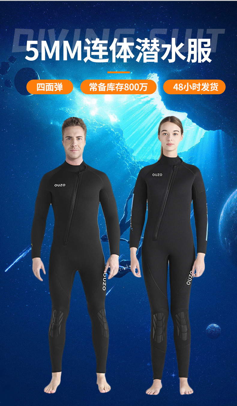 5mm湿式冬泳连体自由浮潜防晒冲浪服男女款加厚保暖防寒潜水服