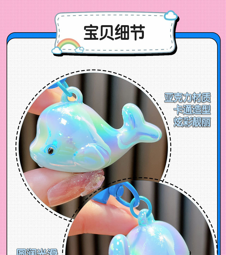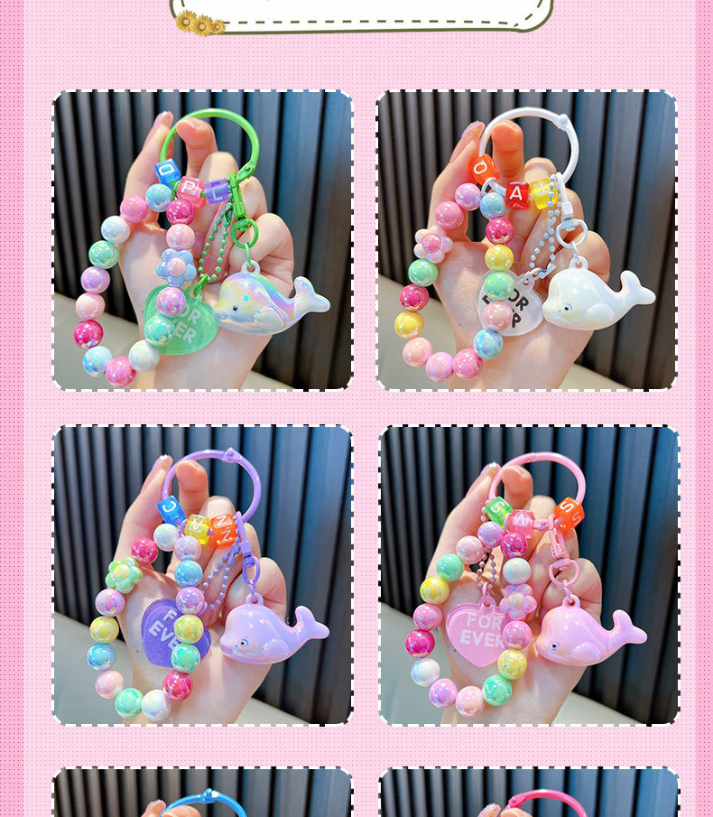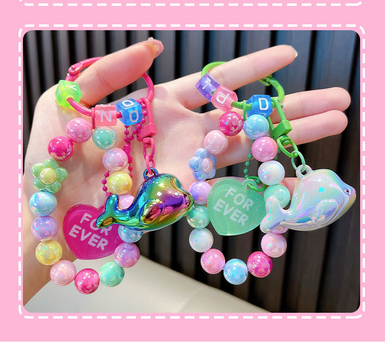 아크릴 도금 해양 돌고래 키 체인 펜던트 신선한 컬러 구슬 커플 가방 펜던트 선물 도매스토어 가기