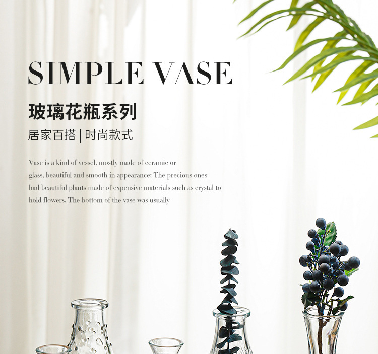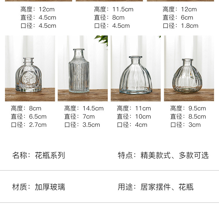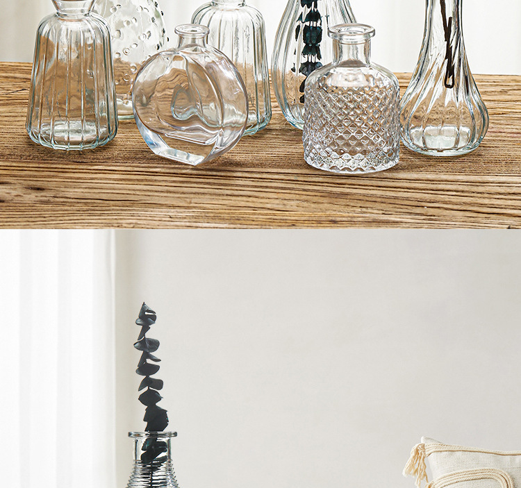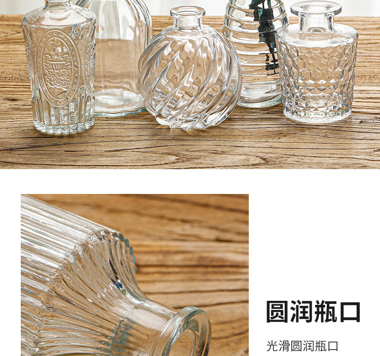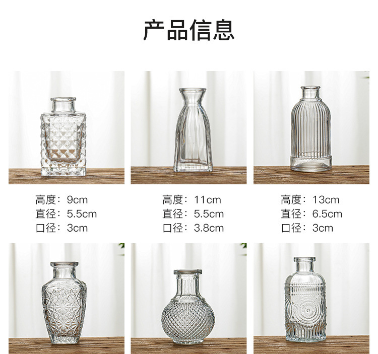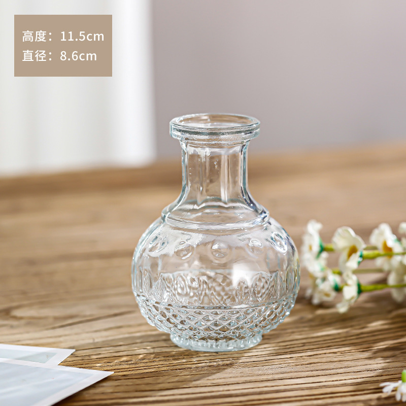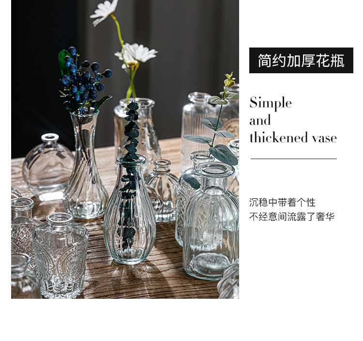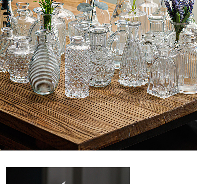 맞춤형 빈티지 유리 작은 꽃병 양각 유럽 스타일 작은 구경 미니 꽃병 말린 꽃 꽃 꽃-투명 배열스토어 가기