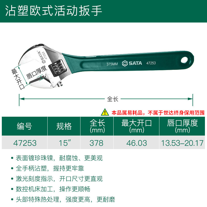 • 47253 플라스틱 코팅 유럽 스타일 조절 렌치 15"