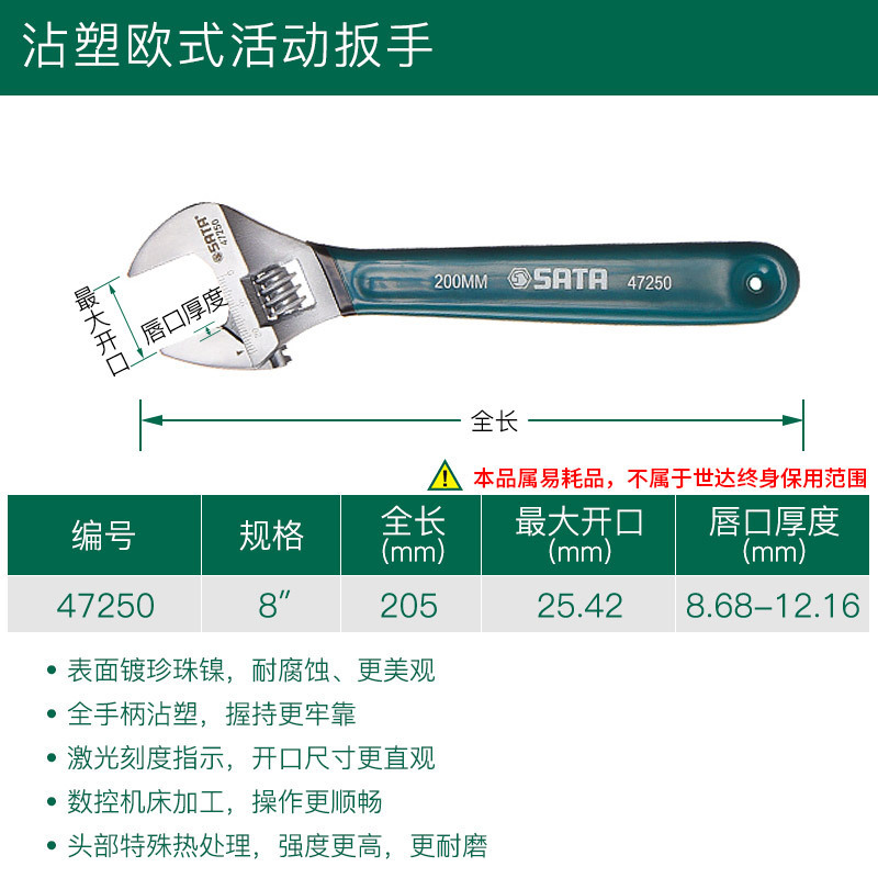 Shida 공구 조절 가능한 렌치 범용 플라스틱 손잡이 8 인치 12 인치 조절 가능한 렌치 가정용 소형 47248 47255스토어 가기
