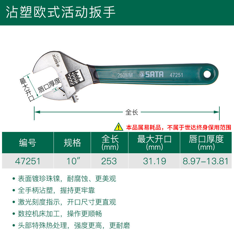 • 47251 플라스틱 코팅 유럽 스타일 조절 렌치 10"