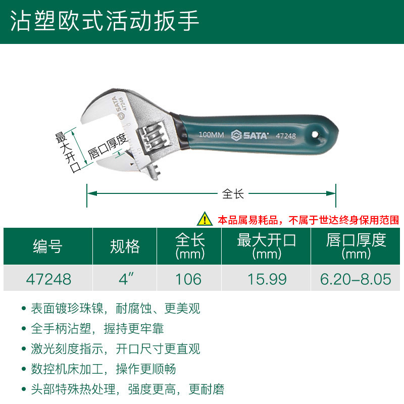 • 47248 플라스틱 코팅 유럽 스타일 조절 렌치 4"