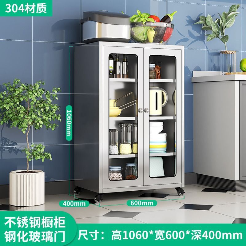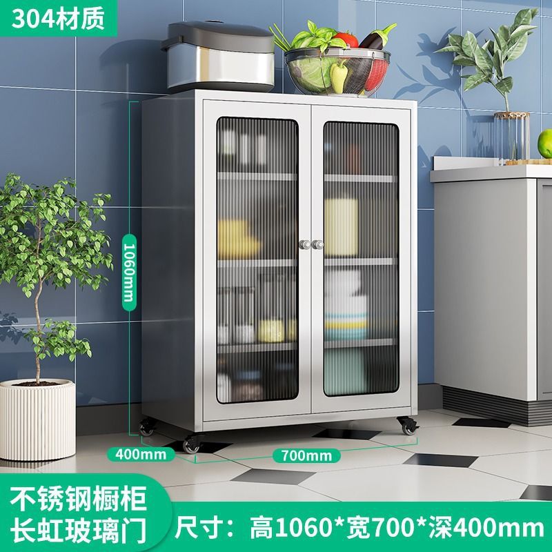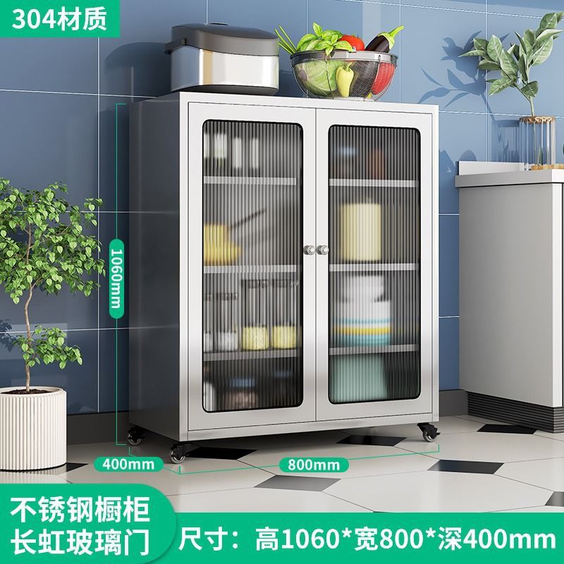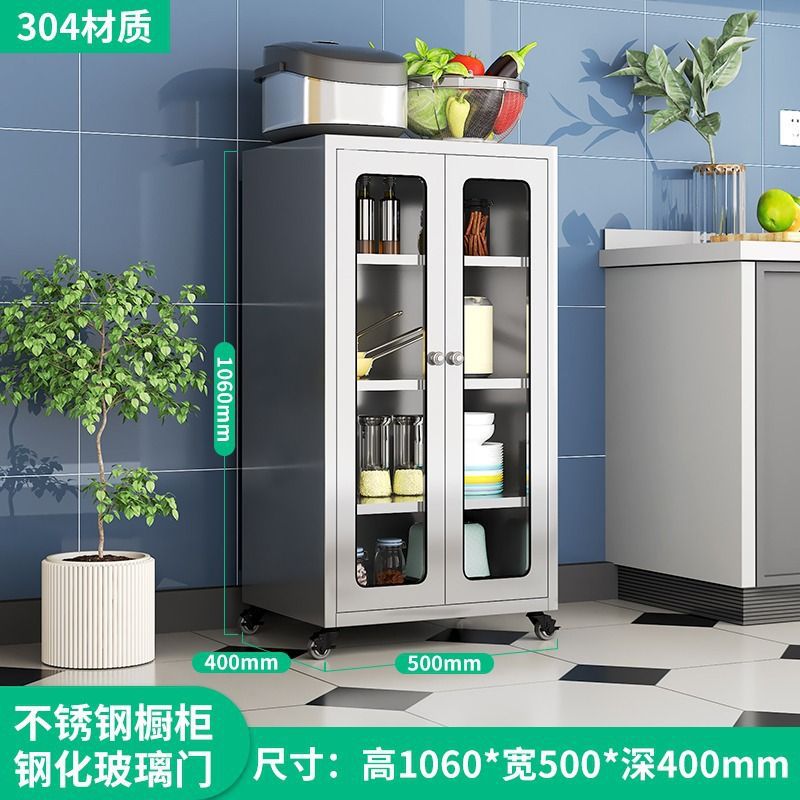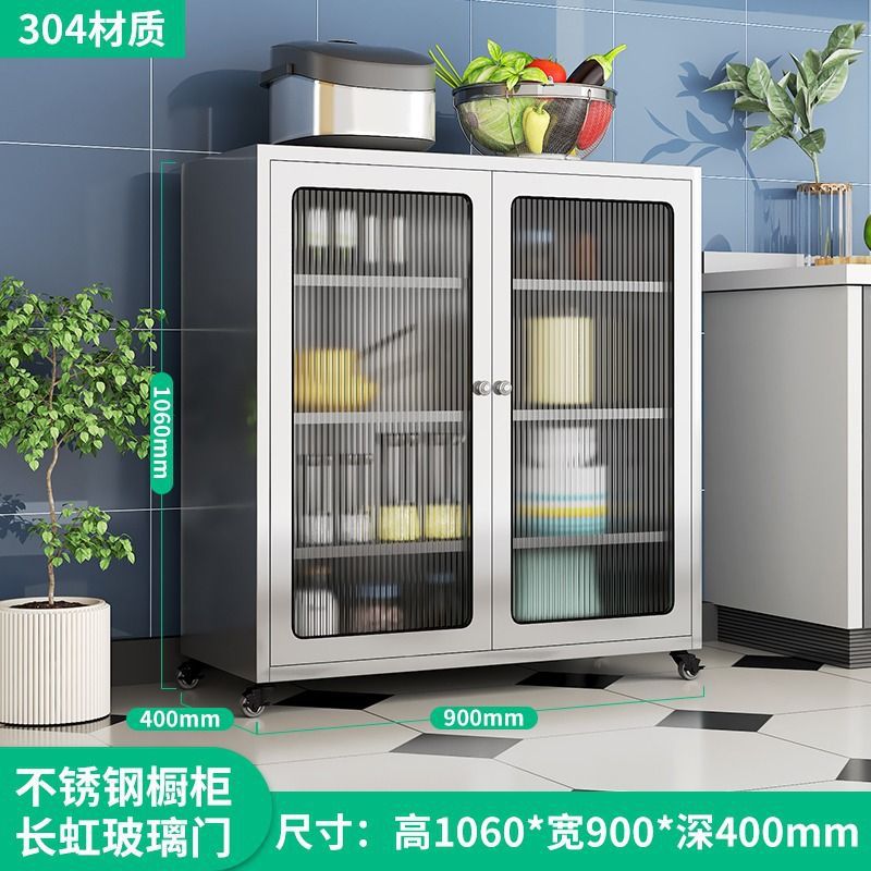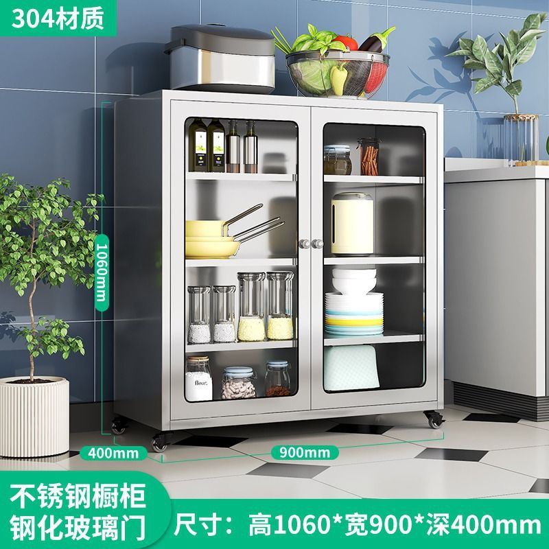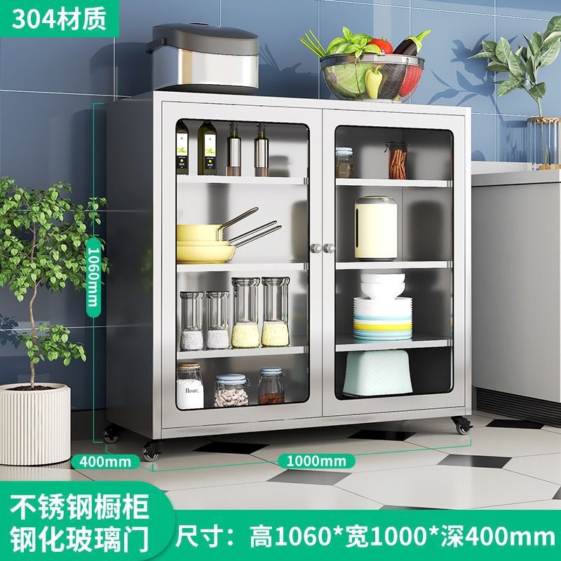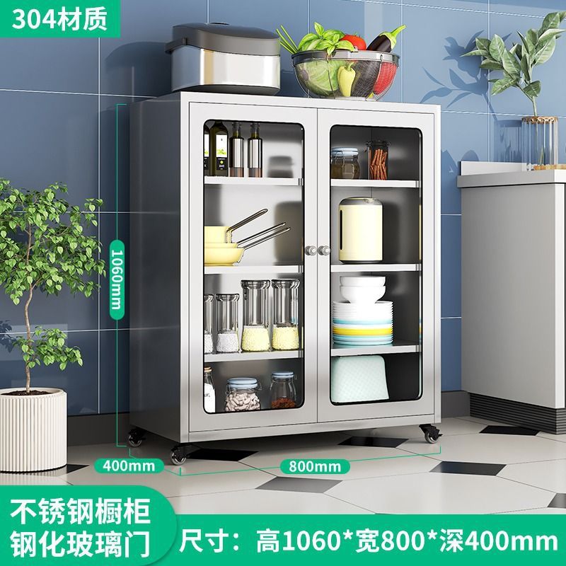 304 두꺼운 스테인레스 스틸 사이드 캐비닛 주방 사물함 찬장 더블 도어 유리 다기능 스토리지 캐비닛 가정용 캐비닛스토어 가기