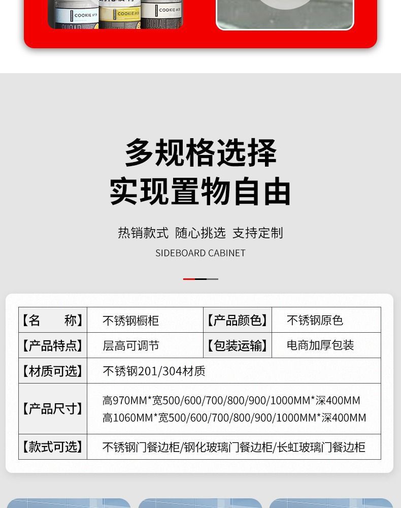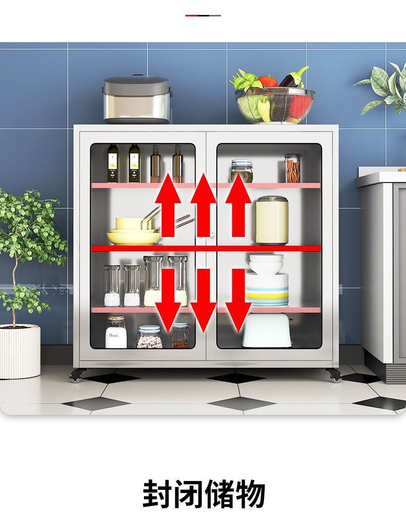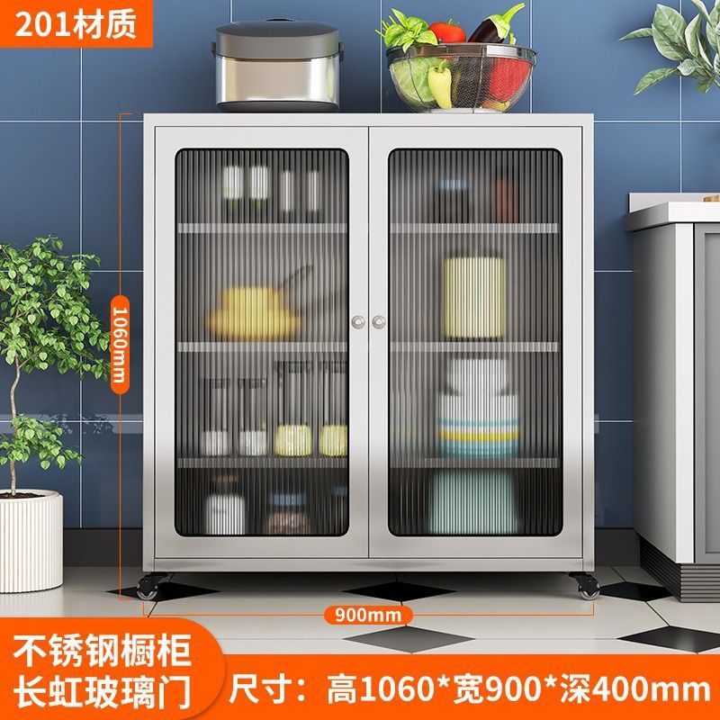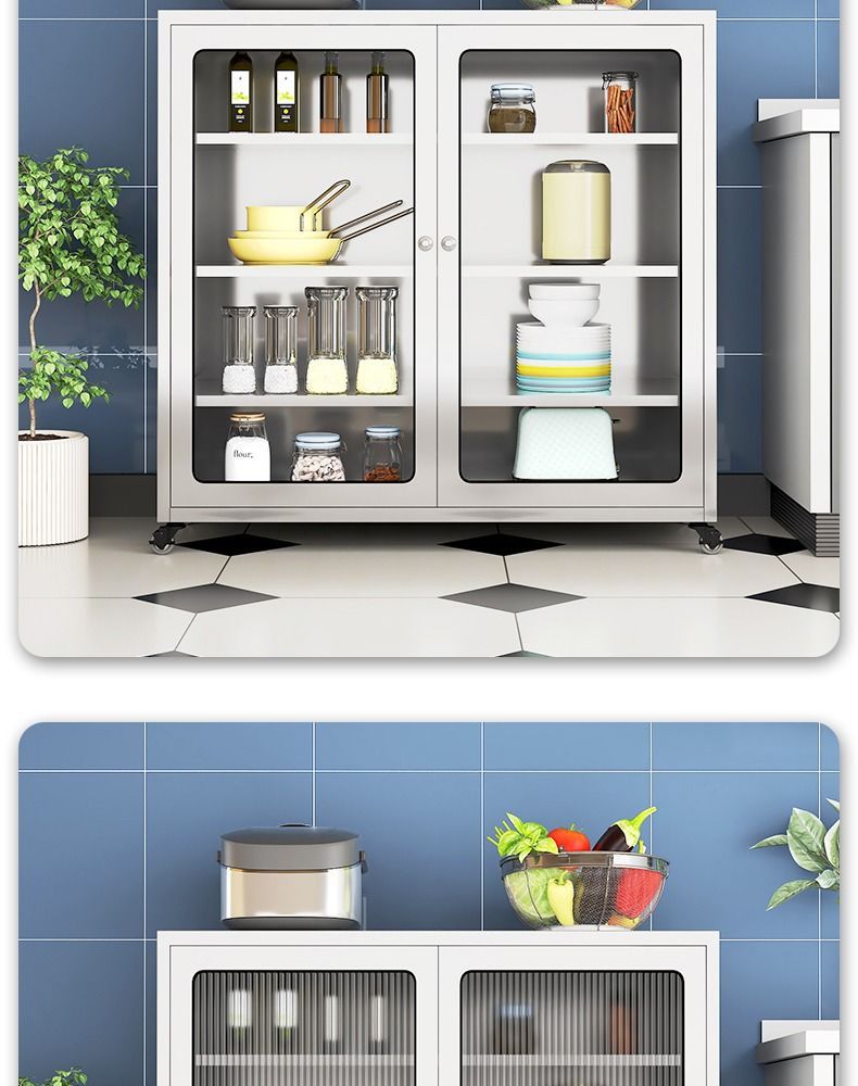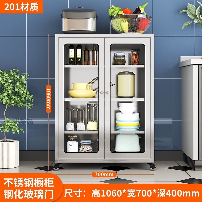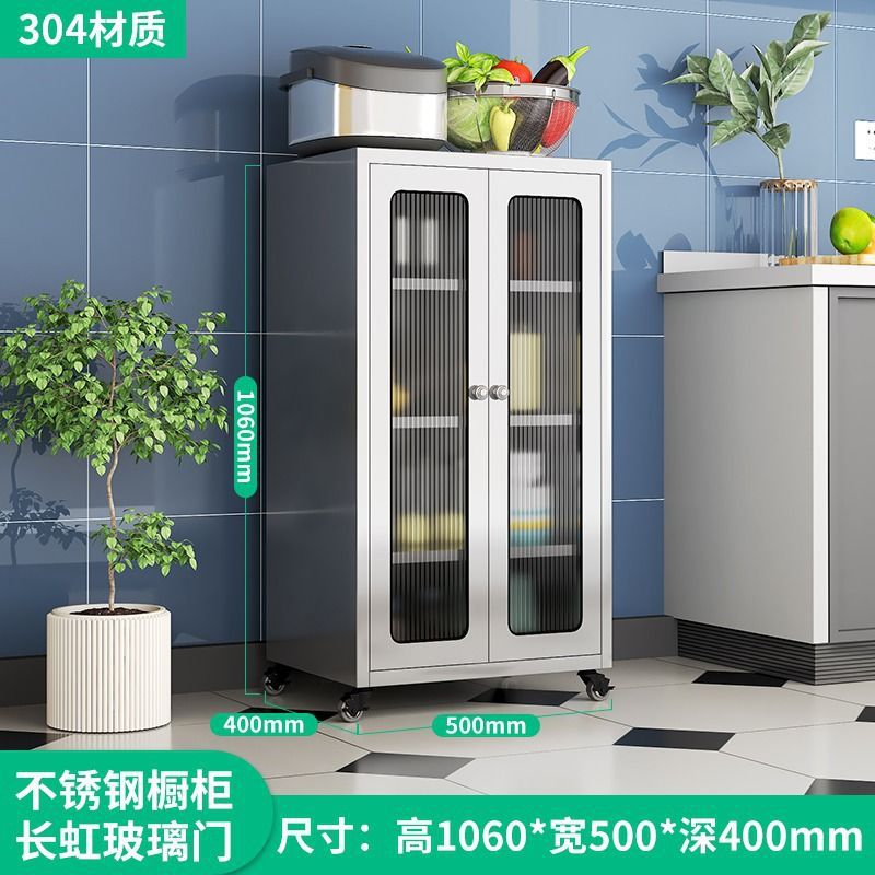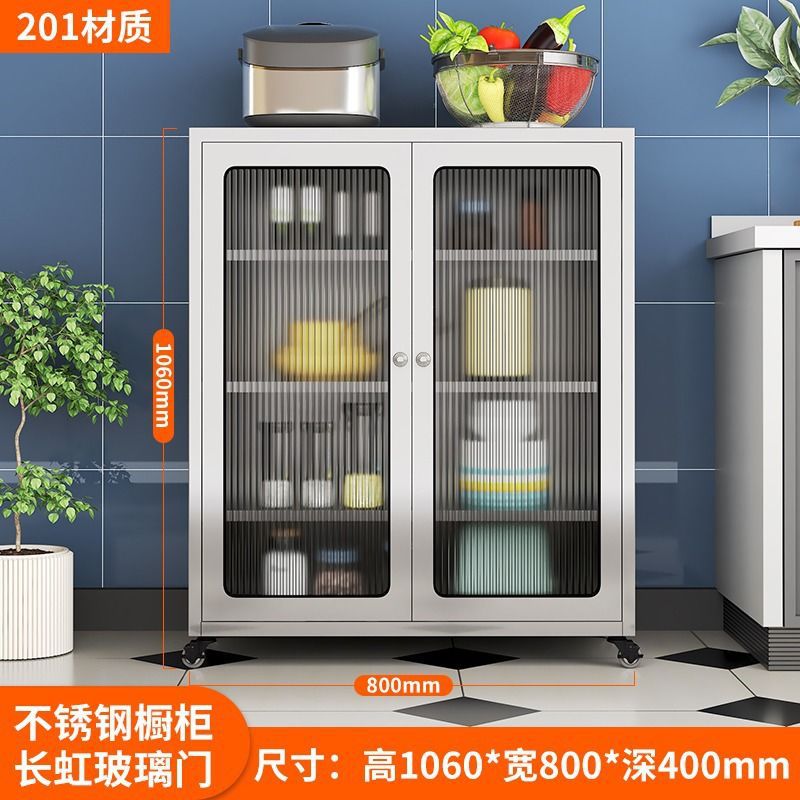 304 두꺼운 스테인레스 스틸 사이드 캐비닛 주방 사물함 찬장 더블 도어 유리 다기능 스토리지 캐비닛 가정용 캐비닛스토어 가기