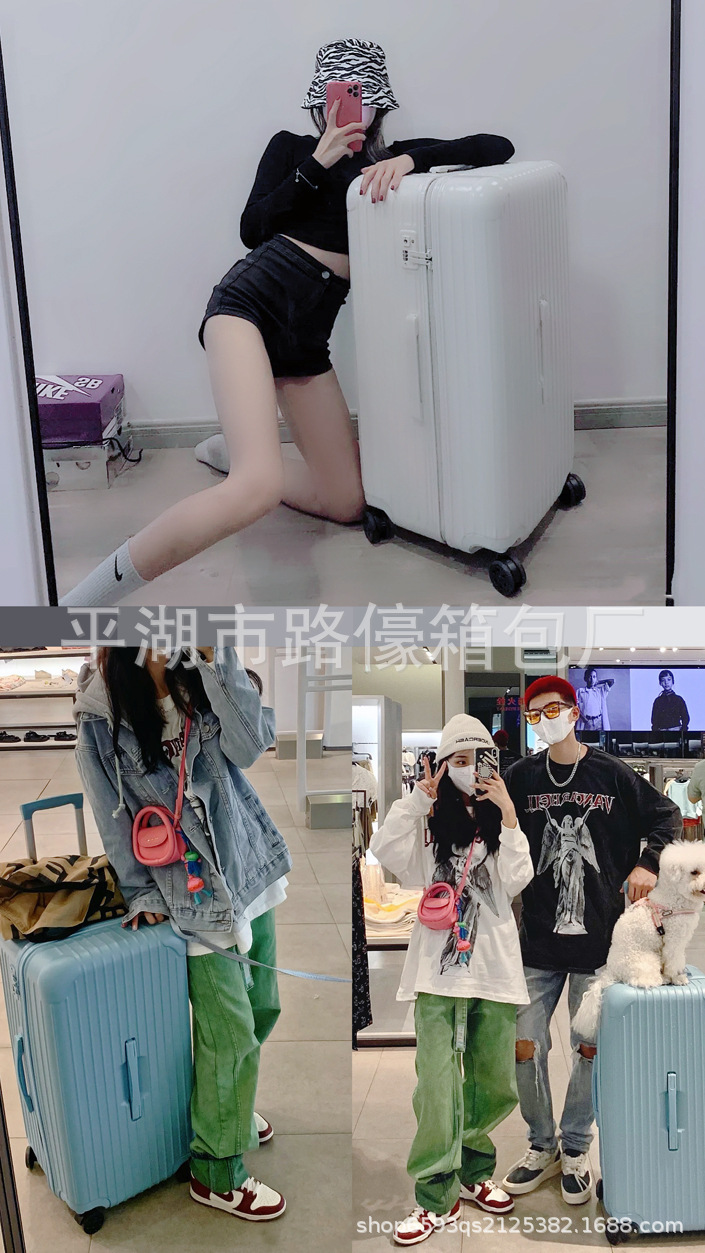 여성용 캔디 컬러 대용량 가방 남성용 32인치 범용 휠 트롤리 케이스 YKK 지퍼 체크 비밀번호 가죽 케이스스토어 가기