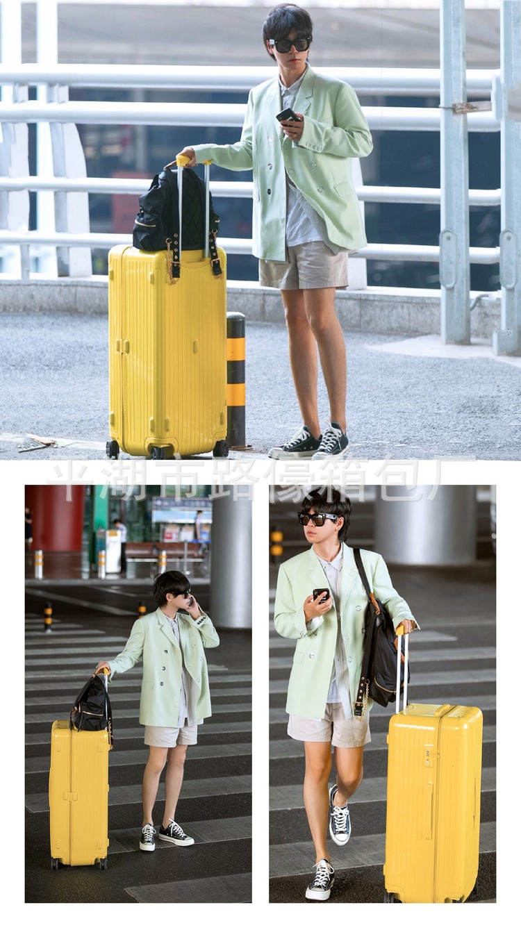 여성용 캔디 컬러 대용량 가방 남성용 32인치 범용 휠 트롤리 케이스 YKK 지퍼 체크 비밀번호 가죽 케이스