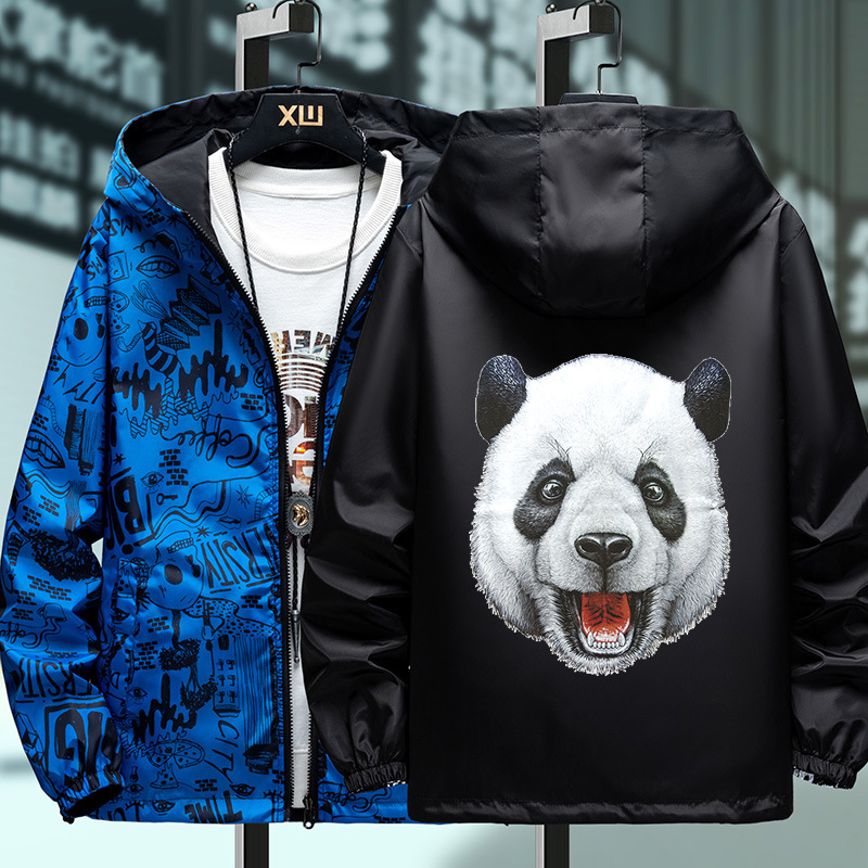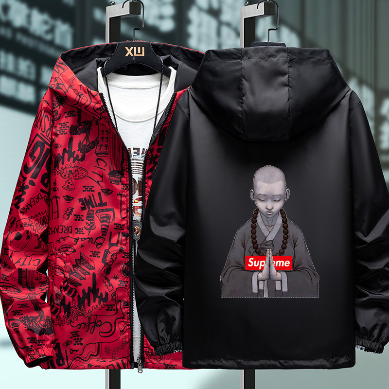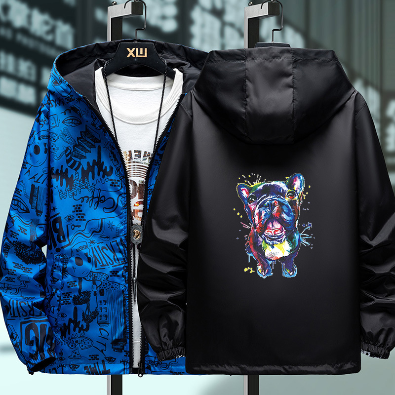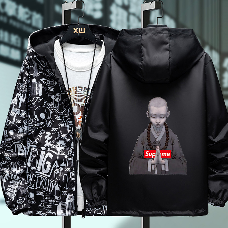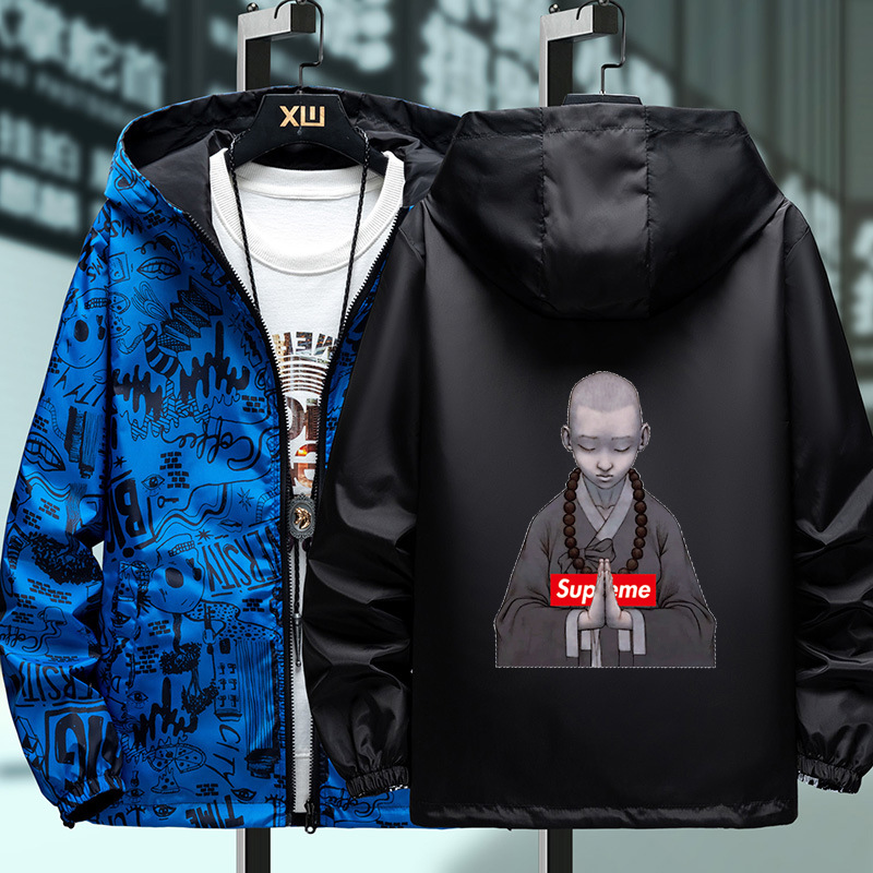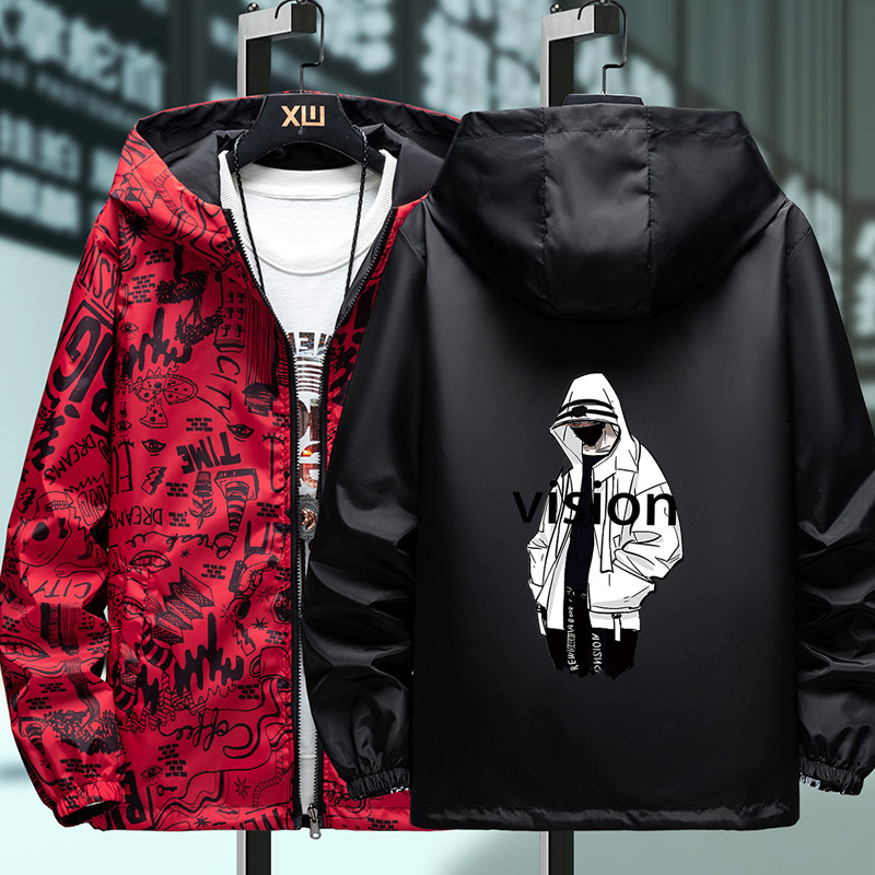 스프링 웨어 양면 재킷 남자 후드 양면 스포츠 재킷 남녀 얇은 슬림 핏 윈드브레이커 학생 클래스 옷스토어 가기