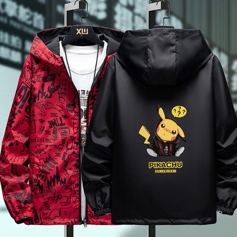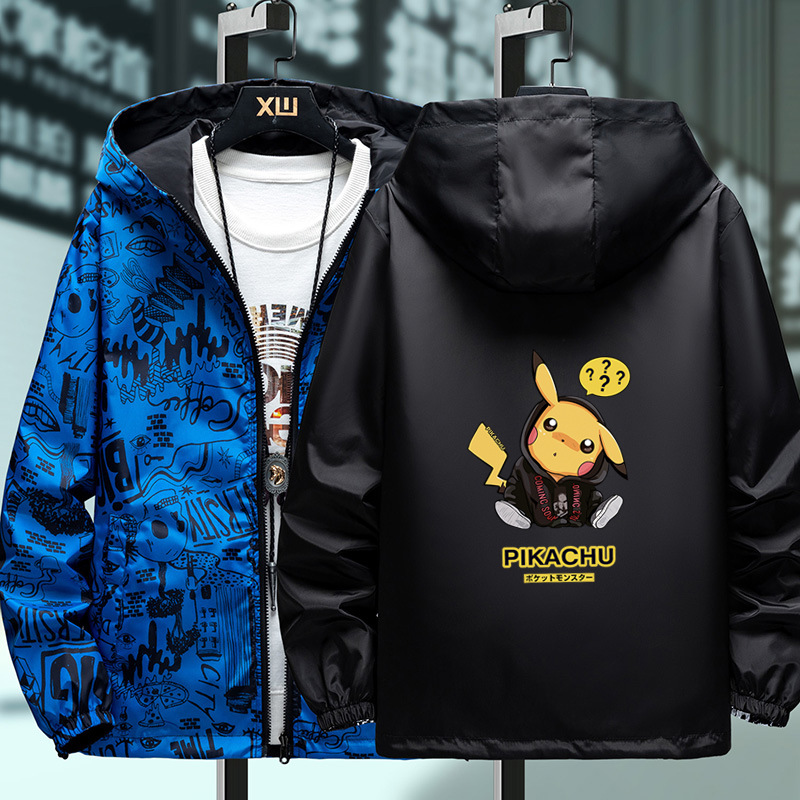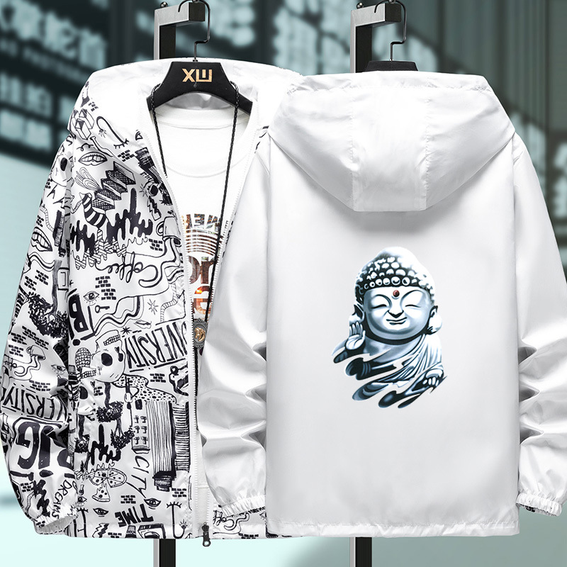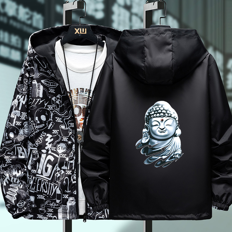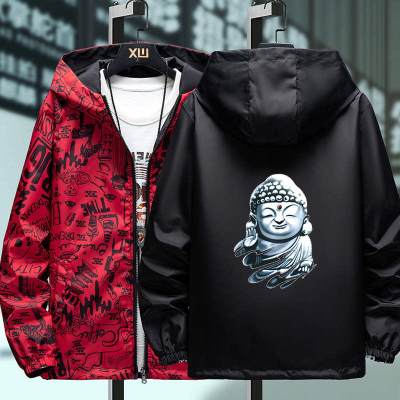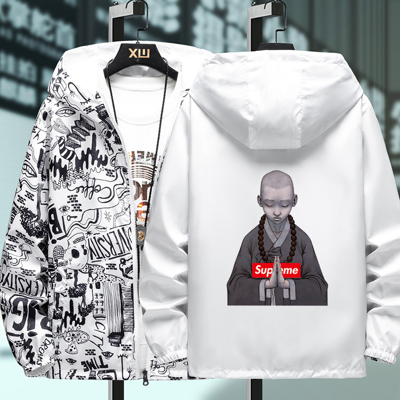 스프링 웨어 양면 재킷 남자 후드 양면 스포츠 재킷 남녀 얇은 슬림 핏 윈드브레이커 학생 클래스 옷스토어 가기