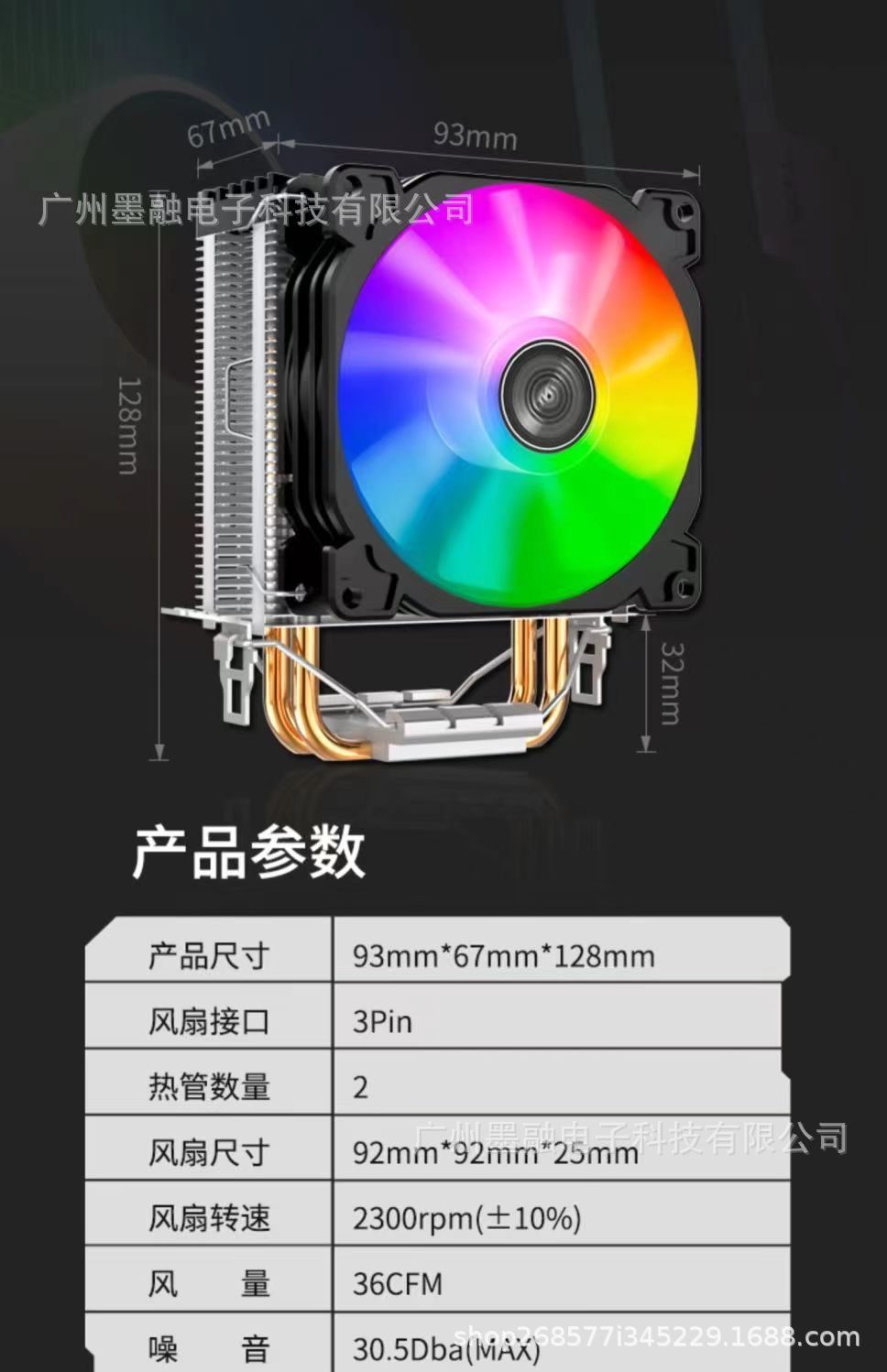 Qiao Sibo CR1200 라디에이터 2 개의 구리 튜브 자동 다채로운 조명 데스크탑 컴퓨터 CPU 공기 냉각 라디에이터스토어 가기