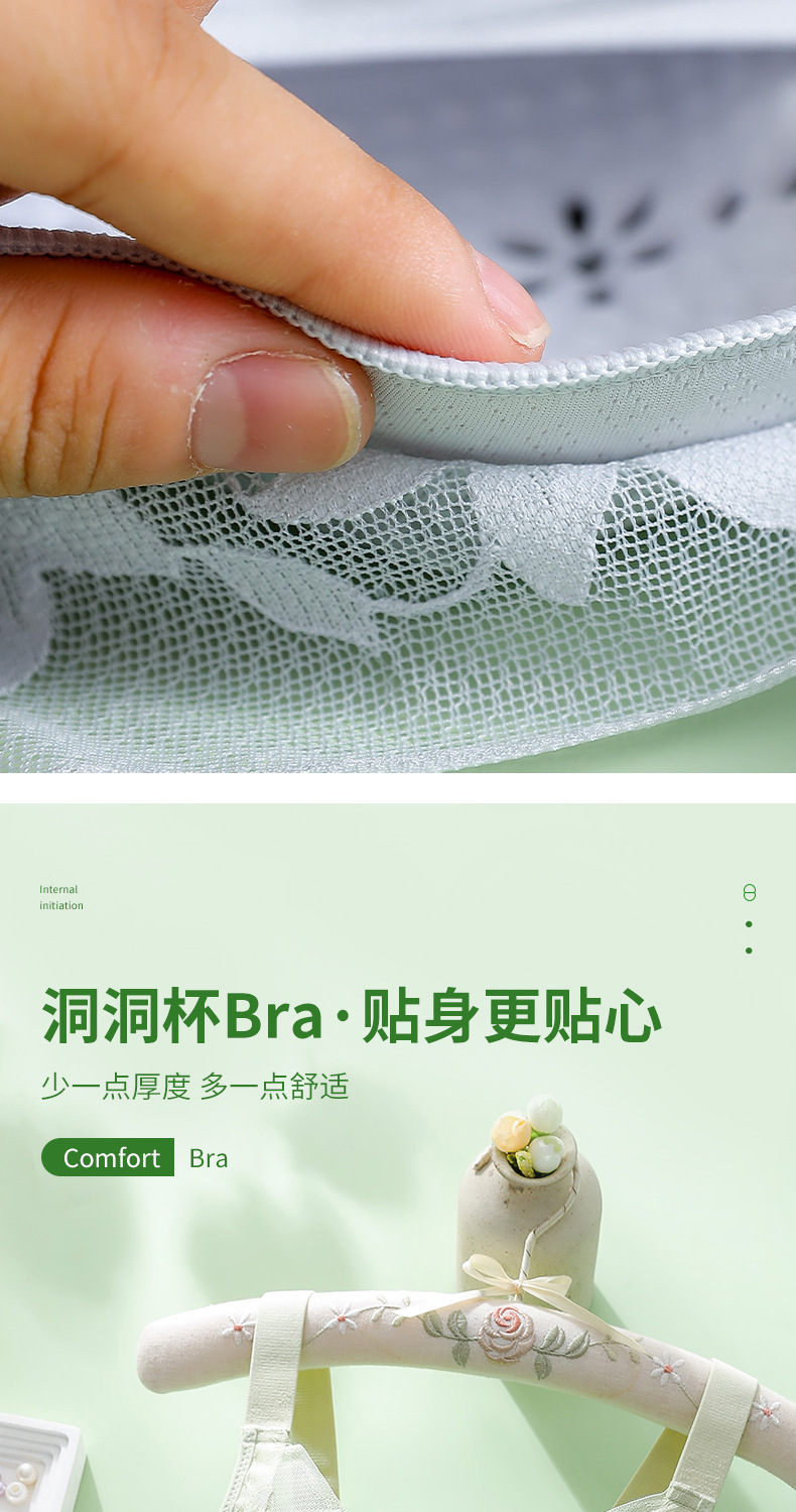 봄과 여름 통기성 홀 컵 속옷 여성의 얇은 큰 가슴 슬리밍 푸시 업 처짐 조절 브래지어