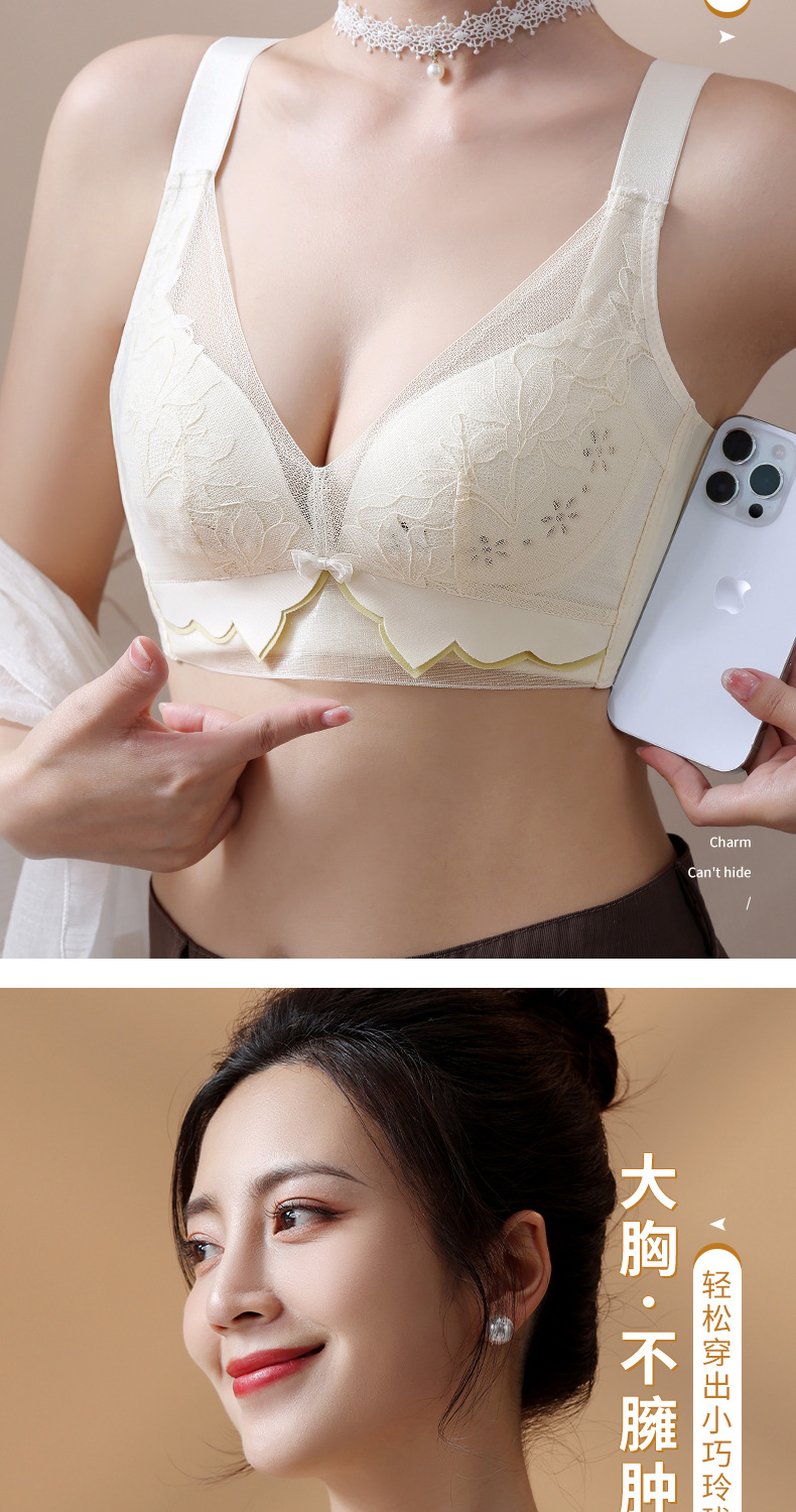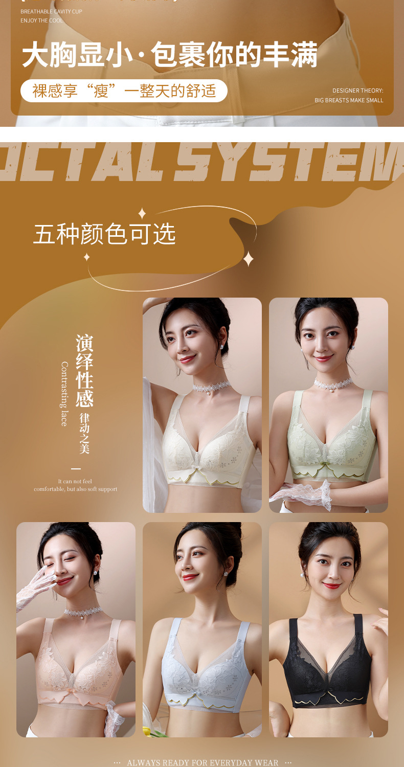 봄과 여름 통기성 홀 컵 속옷 여성의 얇은 큰 가슴 슬리밍 푸시 업 처짐 조절 브래지어스토어 가기