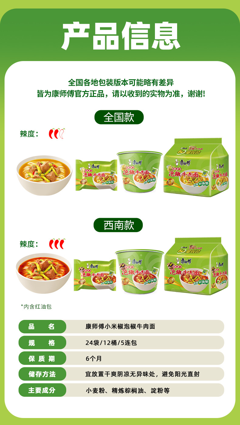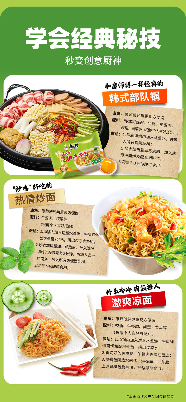 마스터 강 인스턴트 국수 전체 상자 24 가방 큰 음식 가방 찐 절인 고추 절인 양배추 쇠고기 국수 인스턴트 도매스토어 가기