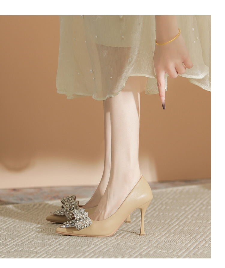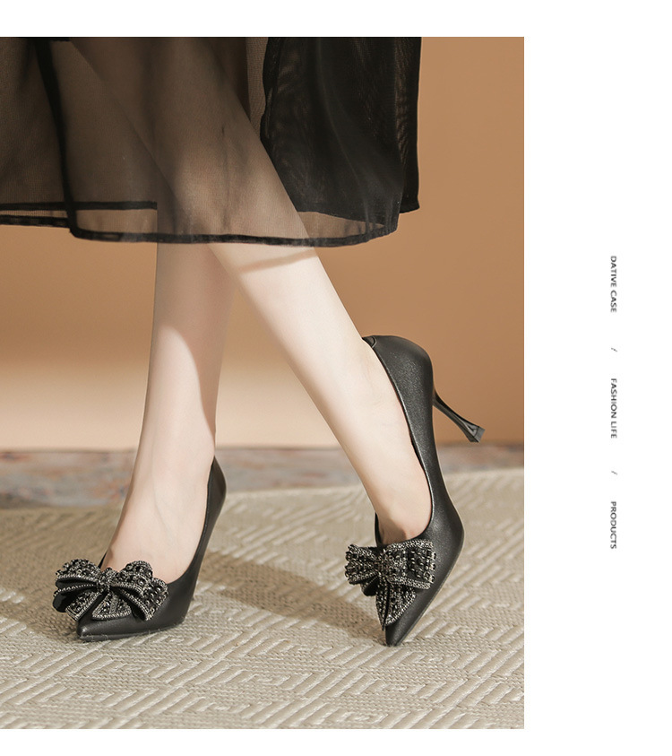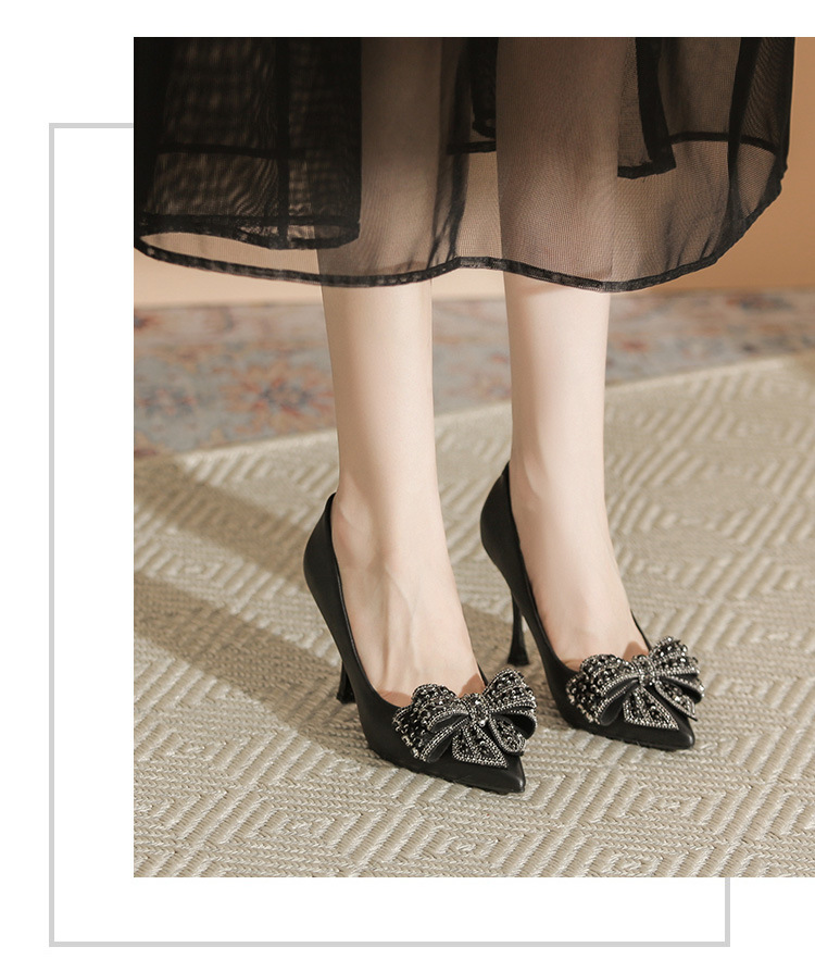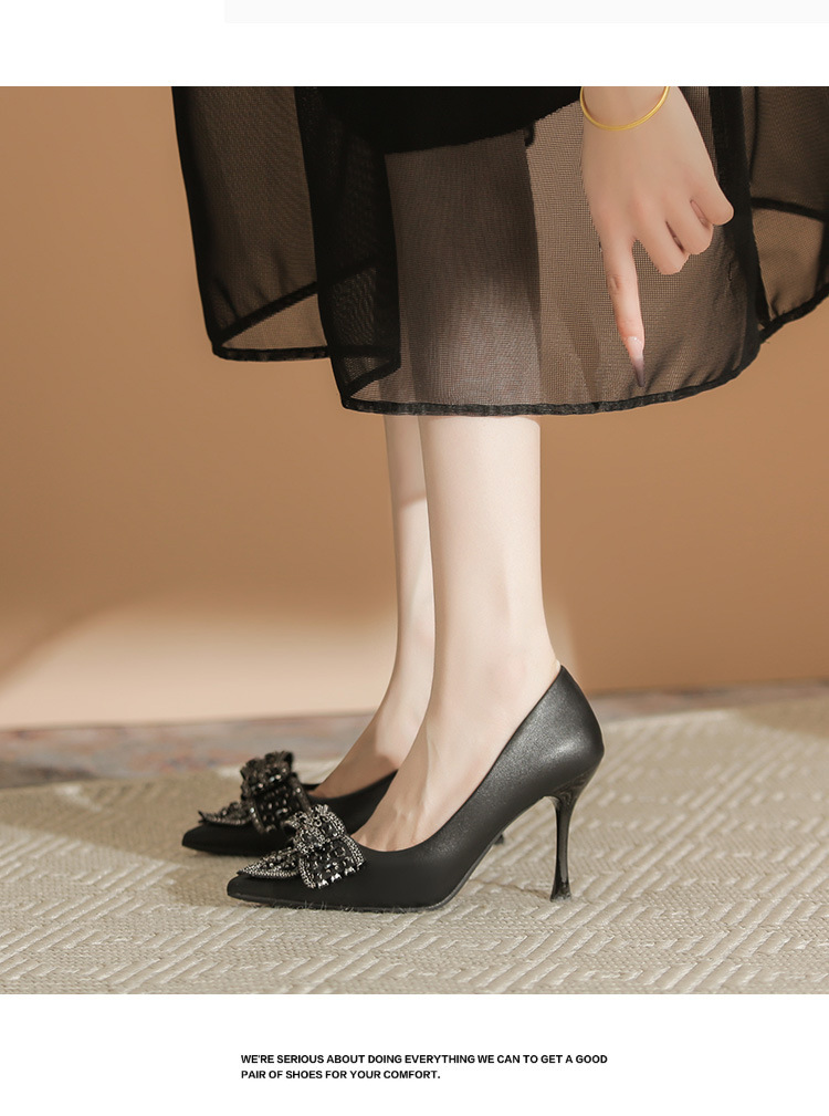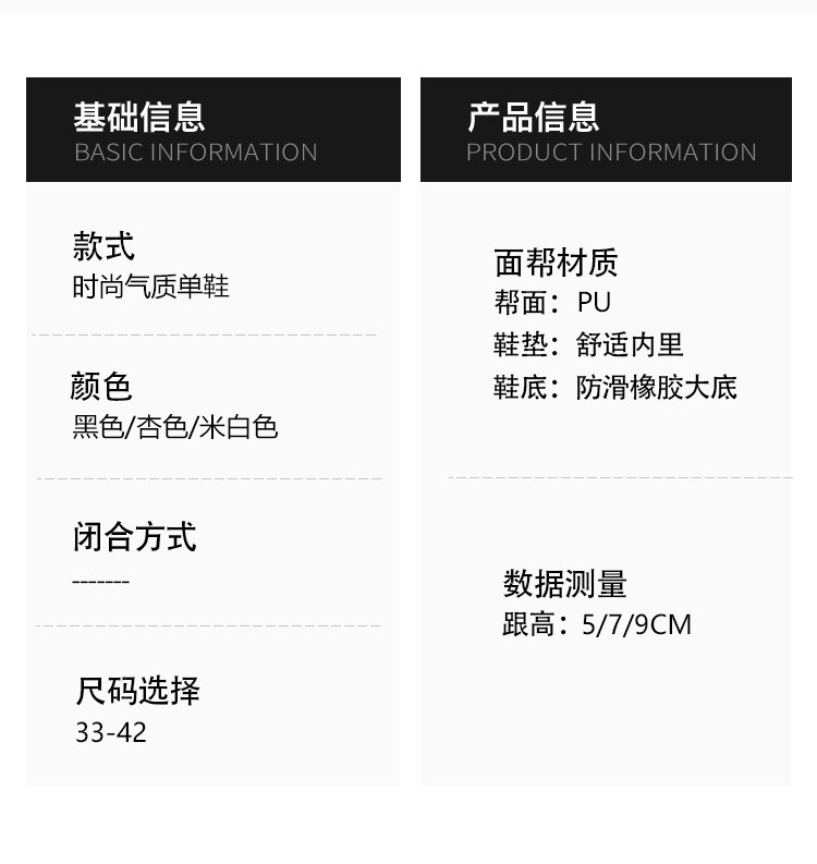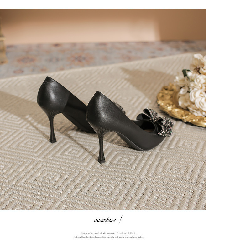 X105-A9 뾰족한 발가락 얕은 입 스퀘어 버클 하이힐 블랙 우아한 여성 신발 매일 통근 우아한 편안한 올 매치