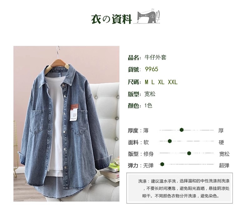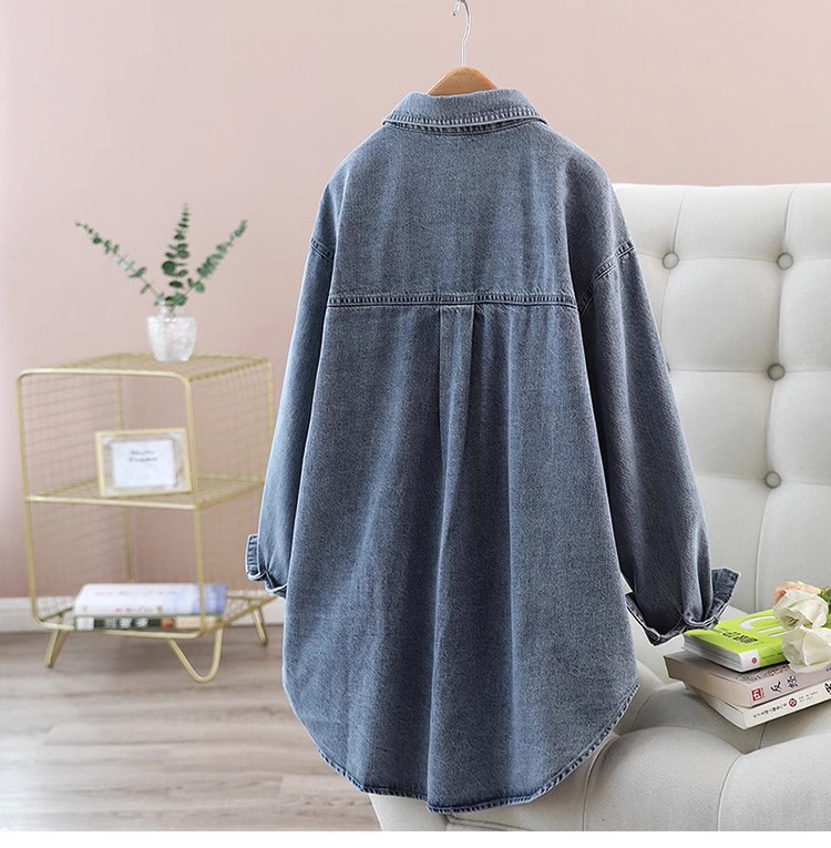 중간 길이의 데님 셔츠 2024 봄 새로운 느슨한 싱글 브레스트 데님 재킷 캐주얼 느슨한 긴 소매 셔츠스토어 가기