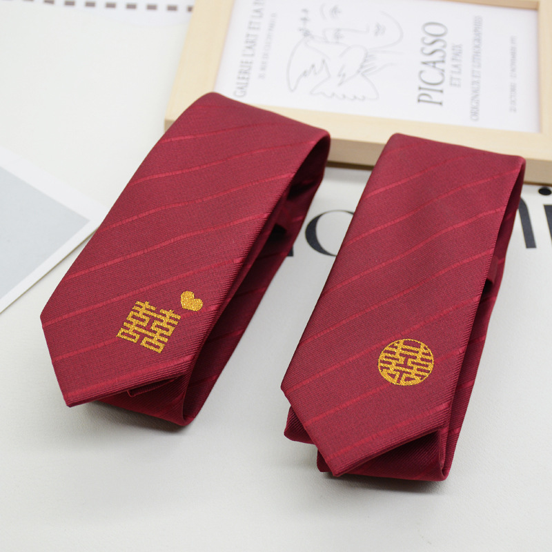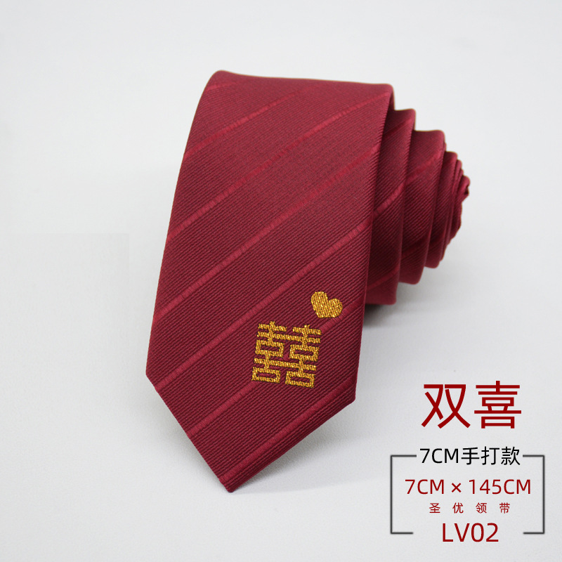 넥타이 남성 정장 한국 스타일 신랑 최고의 남자 웨딩 호스트 버건디 스트라이프 더블 행복 7CM 손 스타일 중국 스타일스토어 가기