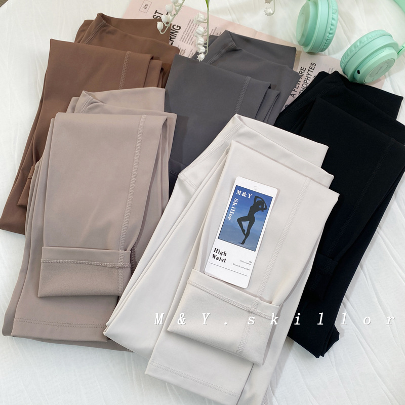 룰루 같은 누드 하이 허리 양털 요가 바지 여성의 가을과 겨울 어색하지 않은 지역 스포츠 타이츠 달리기 피트니스 바지