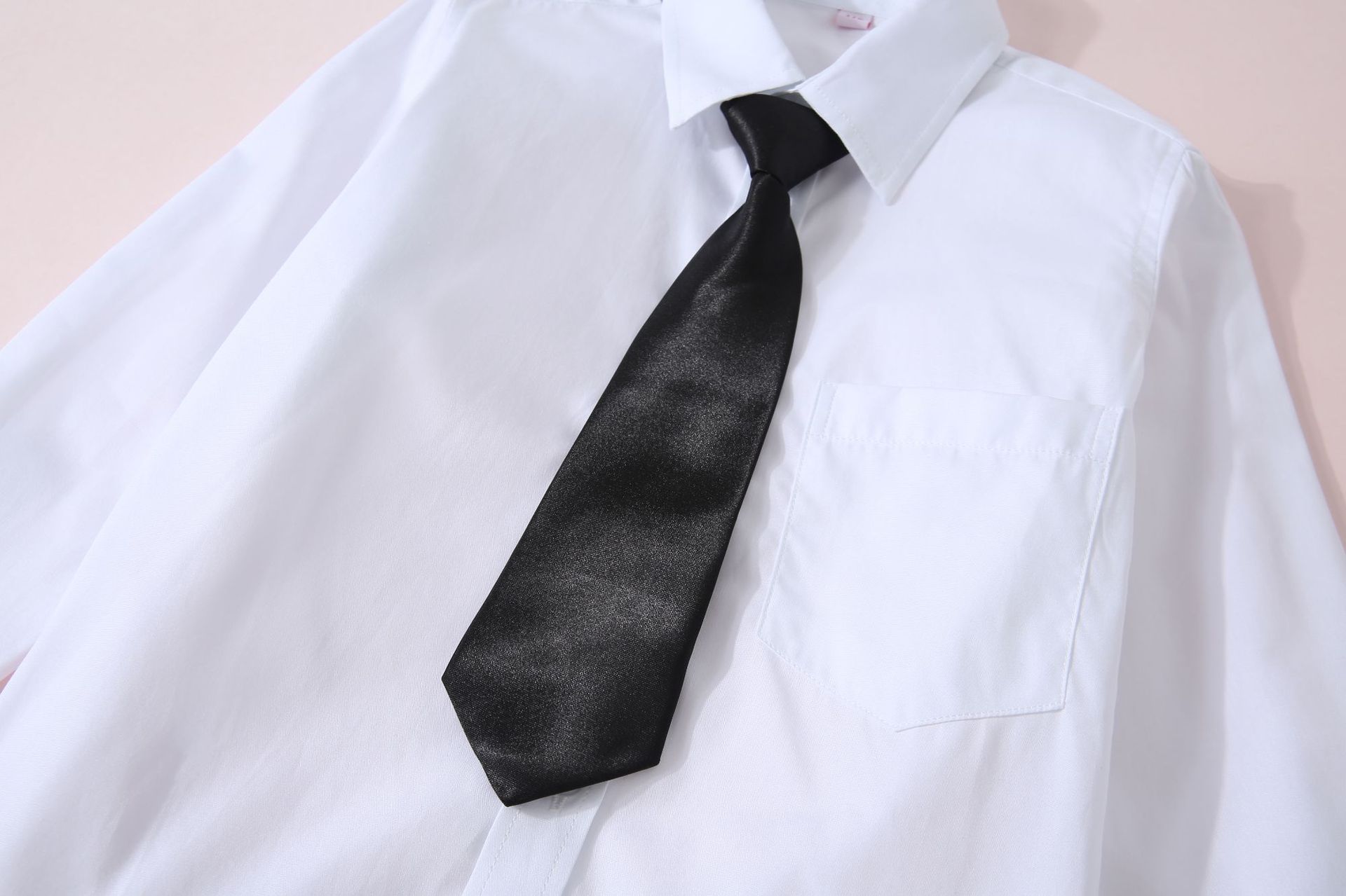 • 2025 뾰족한 칼라 긴 소매 흰 셔츠 [넥타이 없음]