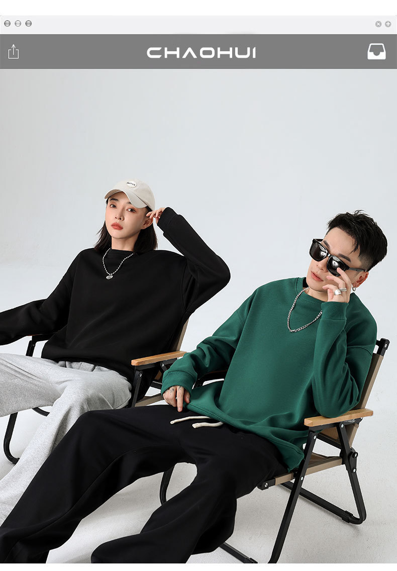 450g 실버 폭스 벨벳 두꺼운 가을, 겨울 플러스 벨벳 운동복 여성용 라운드 넥 셔츠 남성용 단순 캐주얼 솔리드 컬러 루즈 긴 소매 다목적스토어 가기