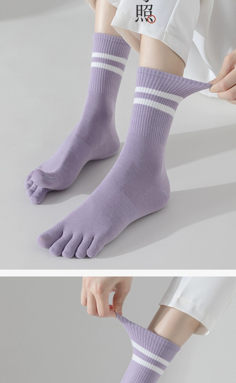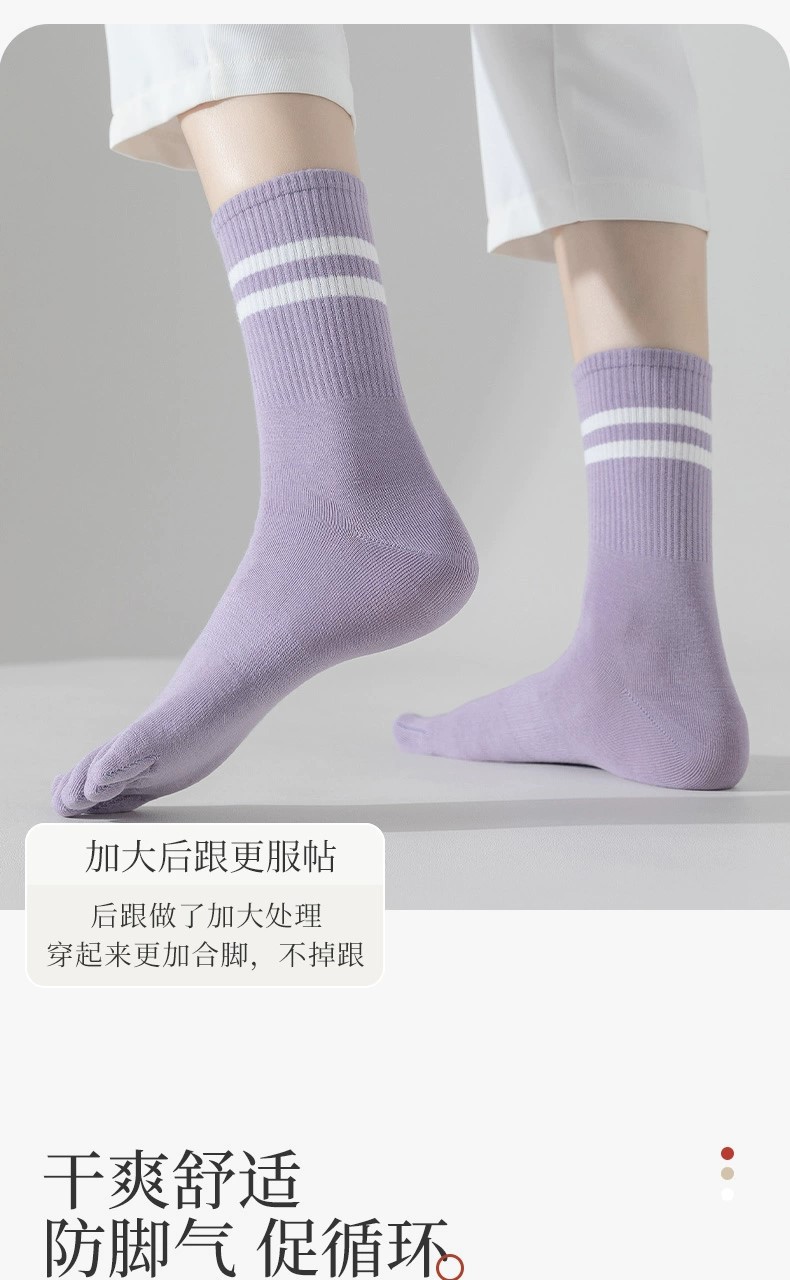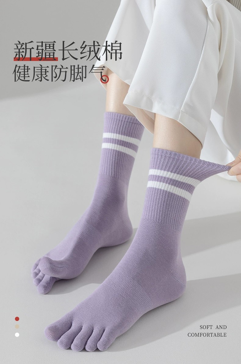 다섯 손가락 양말 여성 중반 종아리 양말 봄, 가을면 양말 유행 분할 발가락 긴 튜브 스포츠 미끄럼 방지 겨울 여성 스타킹