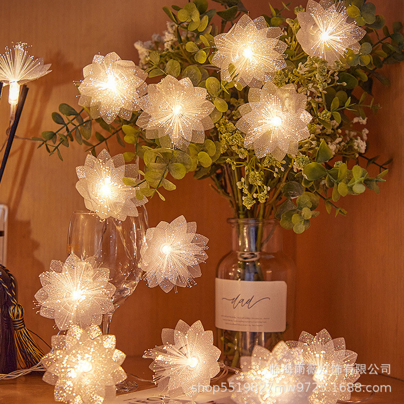 跨境LED光纤花朵串灯闪灯婚礼圣诞节布置创意发光装饰小灯串