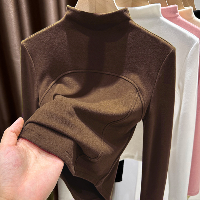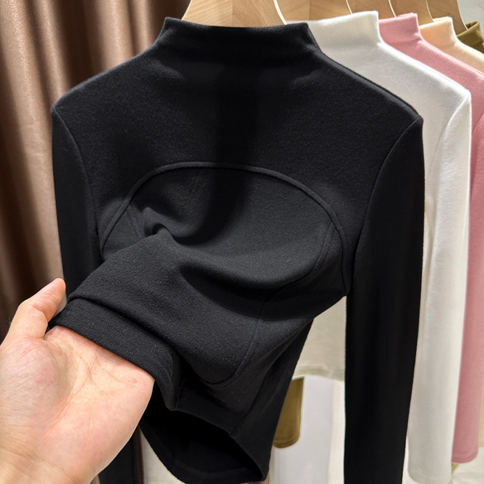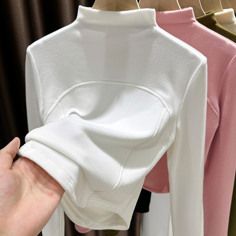 MO10 # 가을과 겨울 드 벨벳 터틀넥 긴팔 티셔츠 틈새 셔츠 바닥 셔츠 단색 어본 패턴 여성용 안쪽 슬리밍
