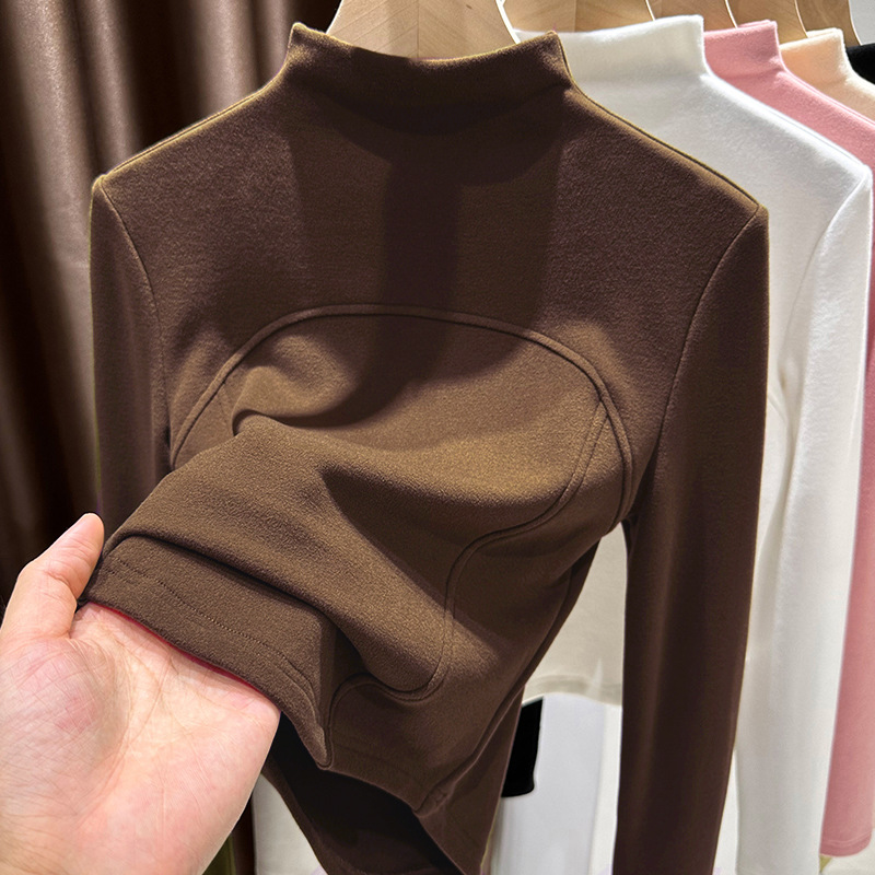MO10 # 가을과 겨울 드 벨벳 터틀넥 긴팔 티셔츠 틈새 셔츠 바닥 셔츠 단색 어본 패턴 여성용 안쪽 슬리밍스토어 가기