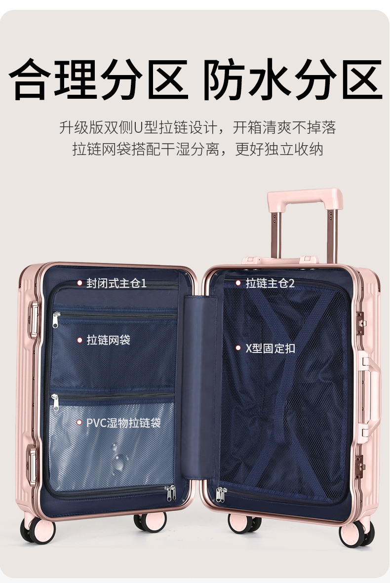 2024 새로운 다기능 가방 도매 20 인치 탑승 기계 수하물 방수 충돌 방지 암호 알루미늄 프레임 상자