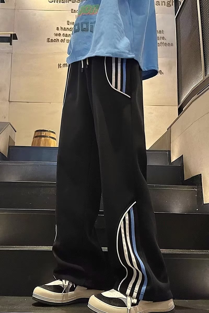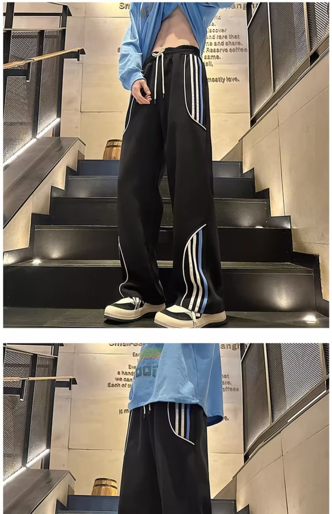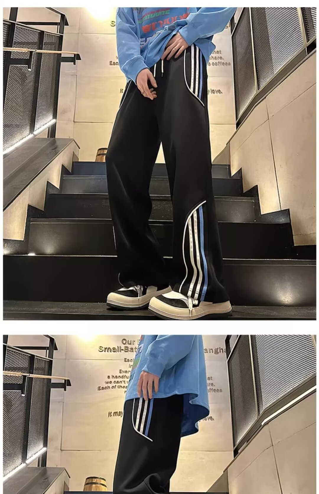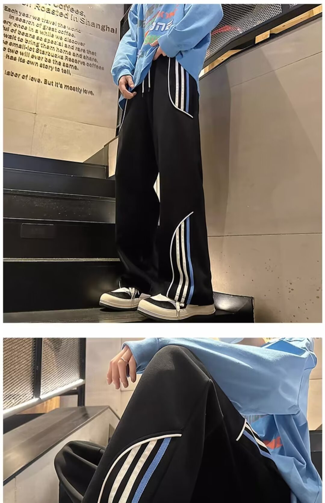 2024 아메리칸 스타일 하이 스트리트 패션 브랜드 더미 스포츠 바지 남자 스트레이트 캐주얼 긴 바지 소년 봄과 가을 느슨한스토어 가기