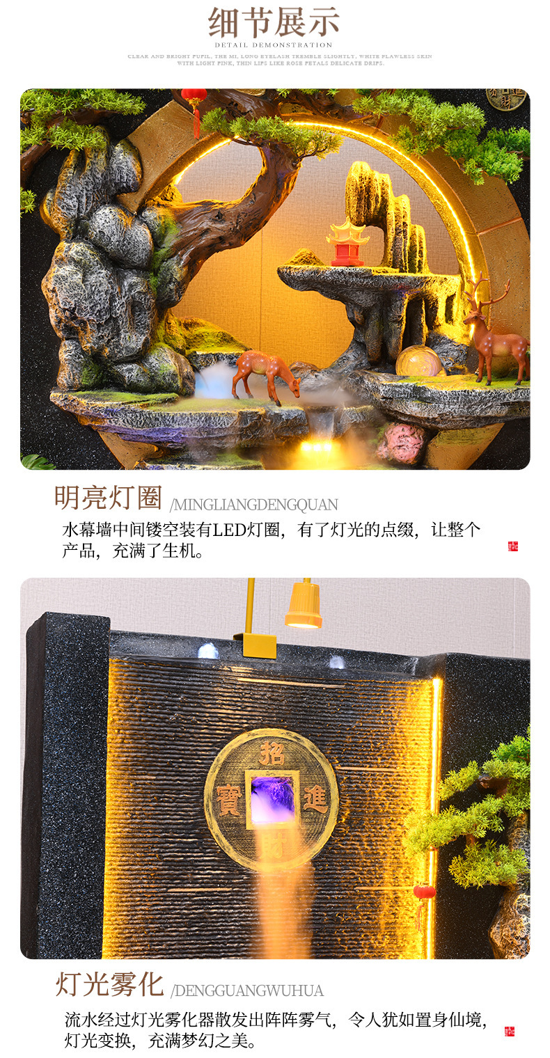 큰 물 커튼 벽 바위 물 분수 장식 거실 사무실 안뜰 빌라 재산 풍수 바퀴 장식스토어 가기